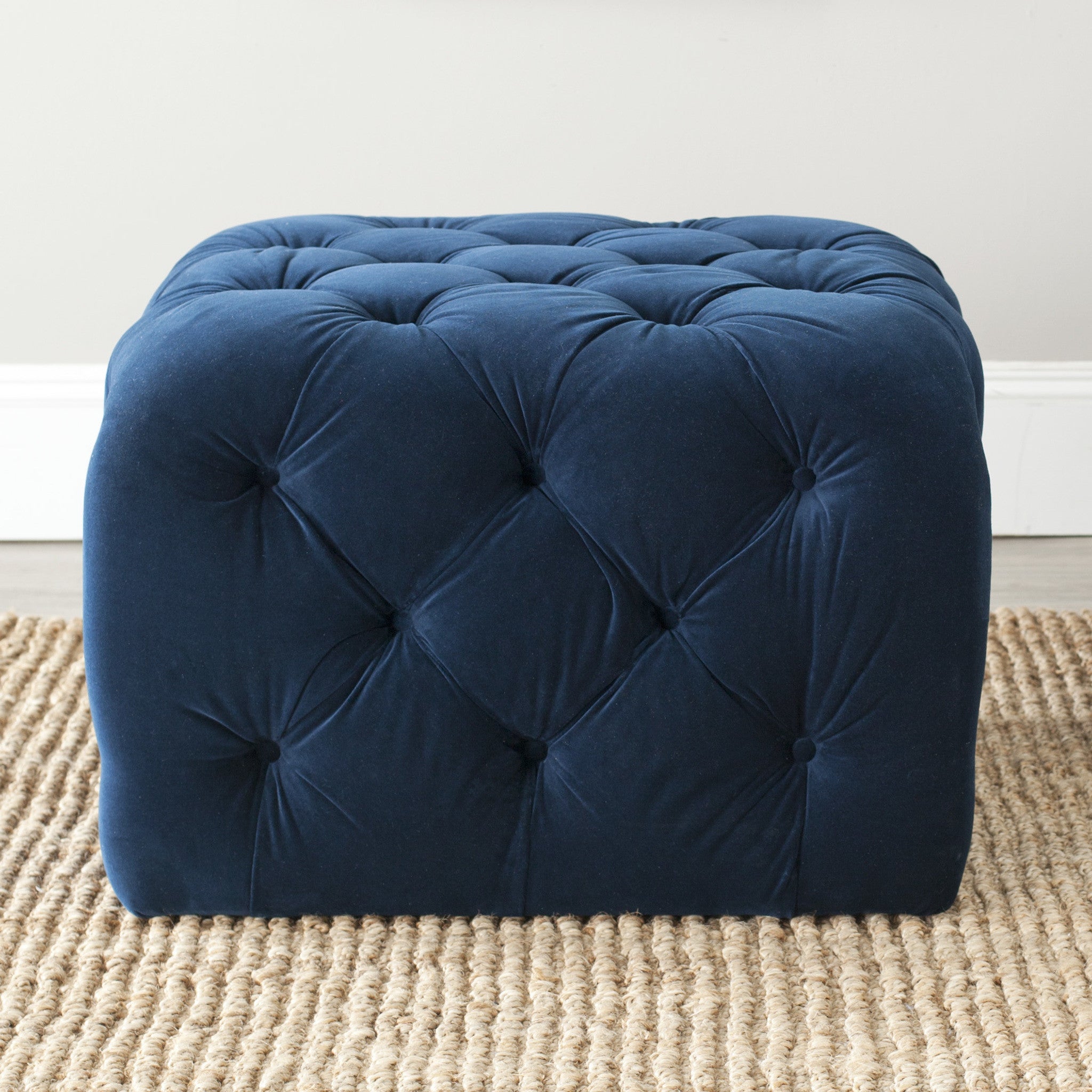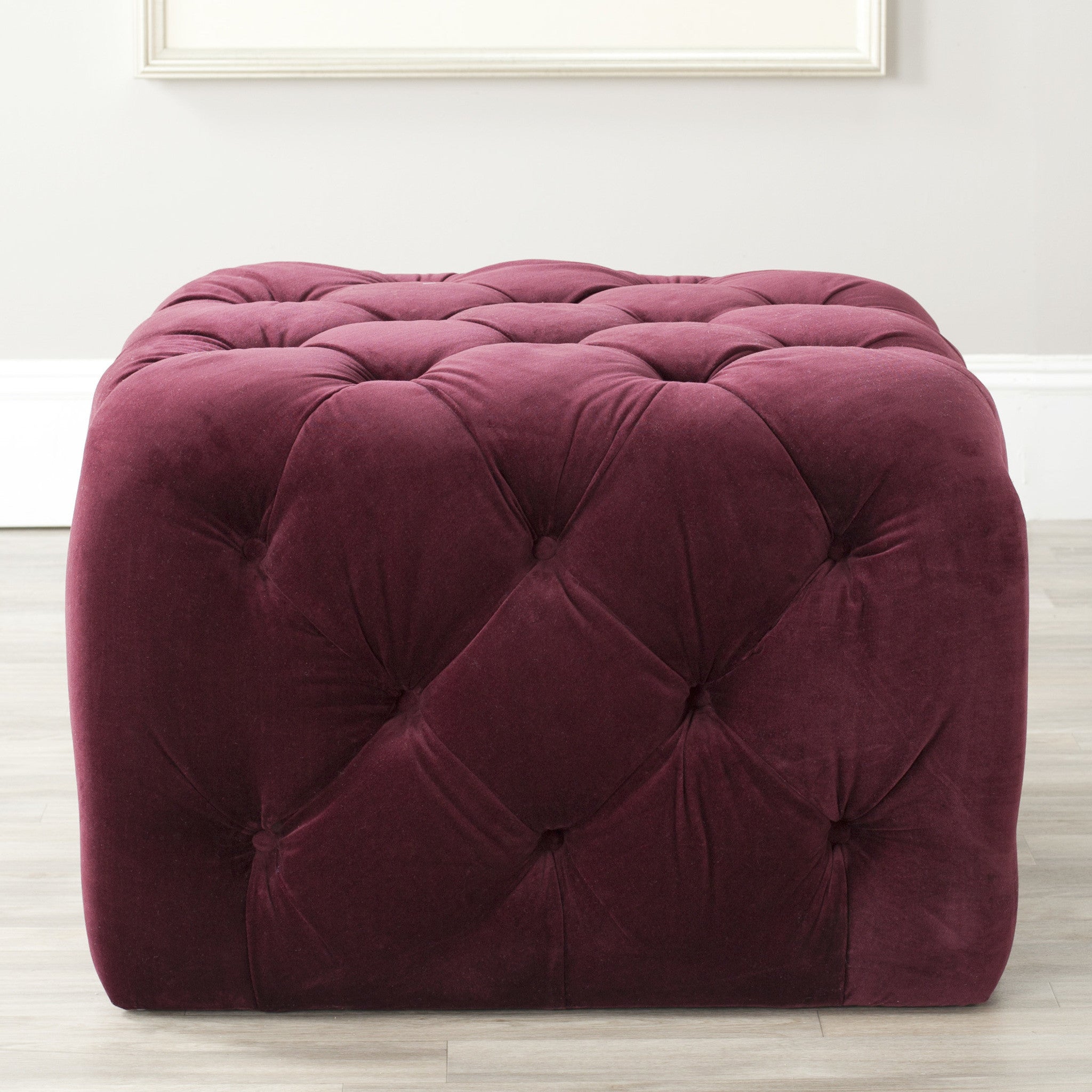 Add a young graphic statement to contemporary rooms with the Kenan ottoman, a neat and structured update of the classic bean bag. Filled with foam and covered in velvety Bordeaux-toned cotton fabric, this geometric design is lavishly detailed with button tufting.
