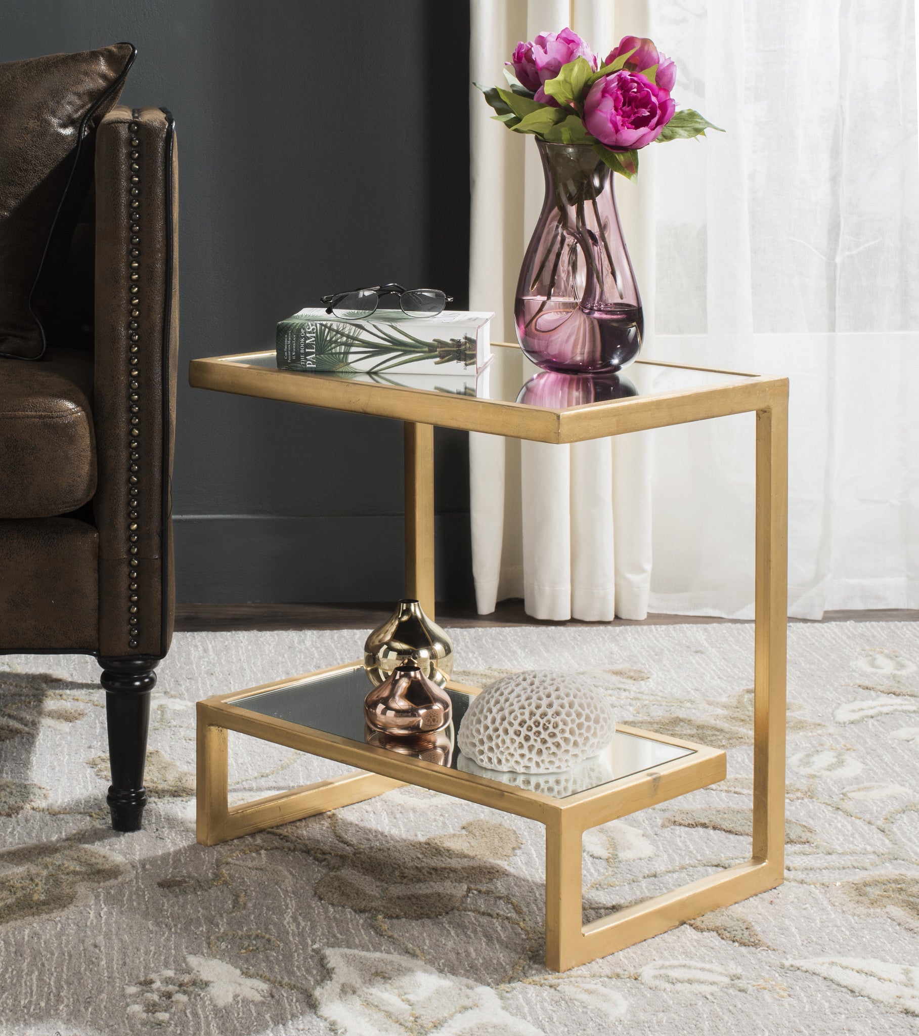 The Kennedy Accent Table will leave a legacy. This regal piece is the perfect place for to set your scotch or glass of wine after a long day. Its gold-leafed iron base and mirrored tabletop are at home next to a chair or sofa in both modern and traditional decor.