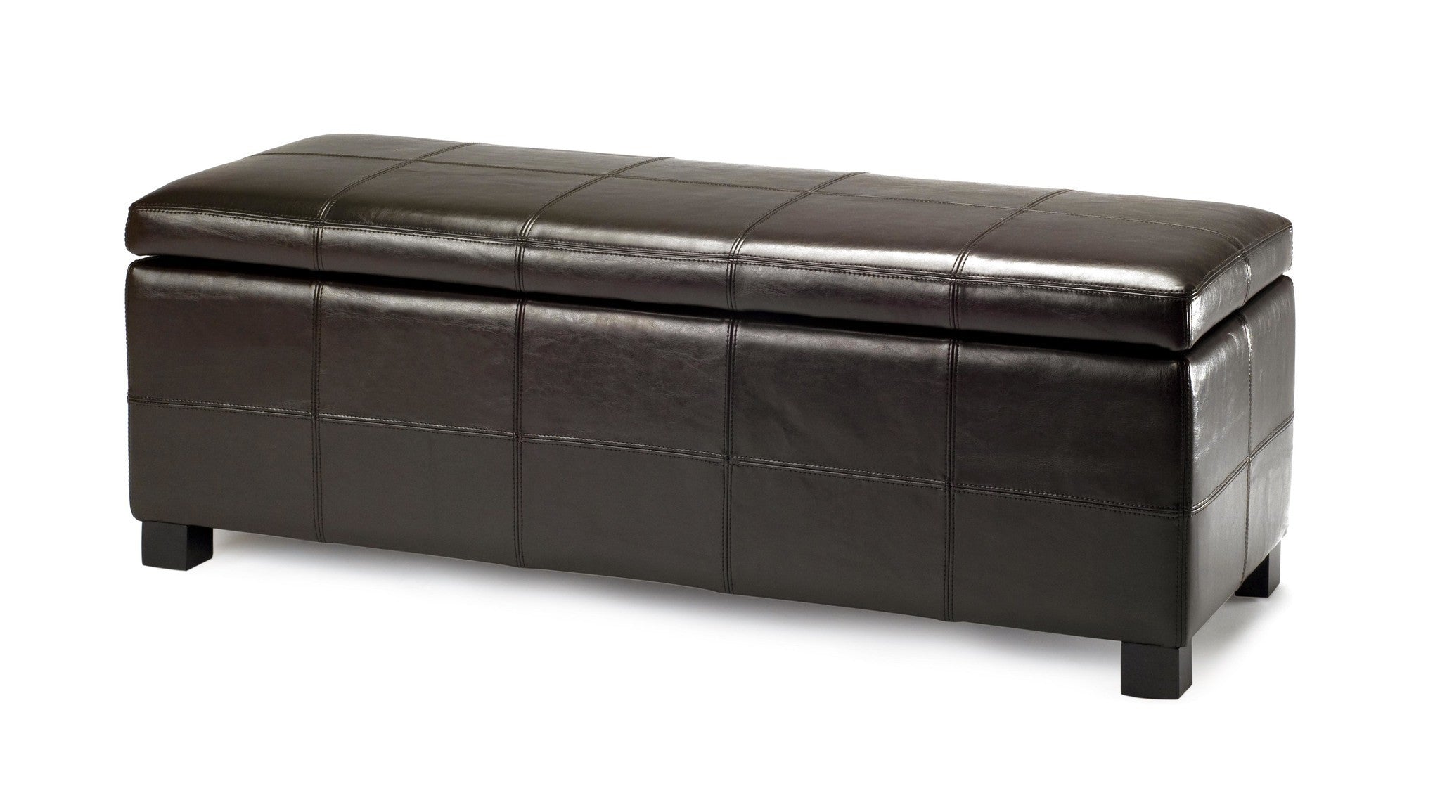 The elegantly appointed Large Madison Storage Ottoman is an interior indulgence, offering both seating and storage. Crafted with sleek brown bicast leather and birch wood in a black finish, its modern spirit is evidenced in its dual functionality.