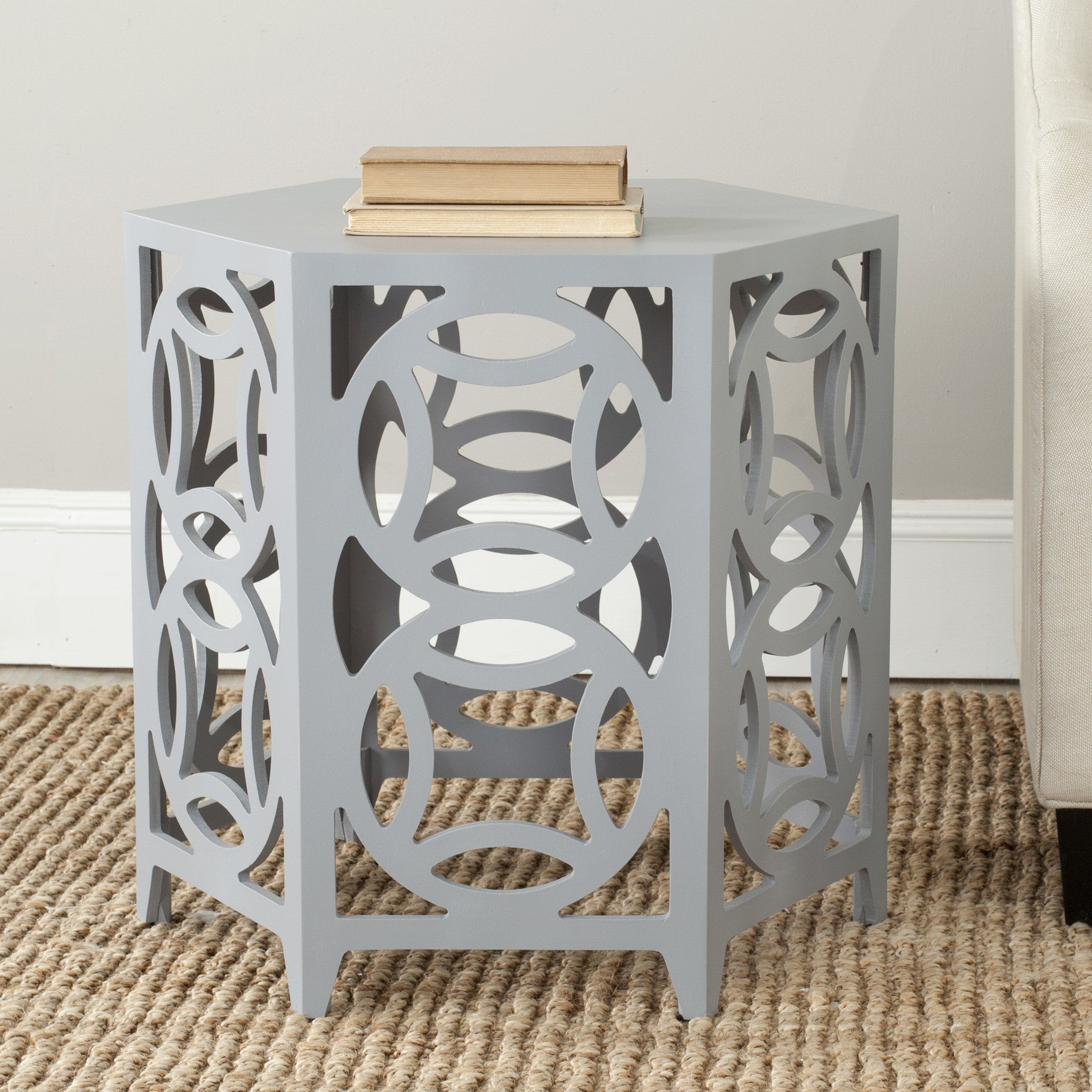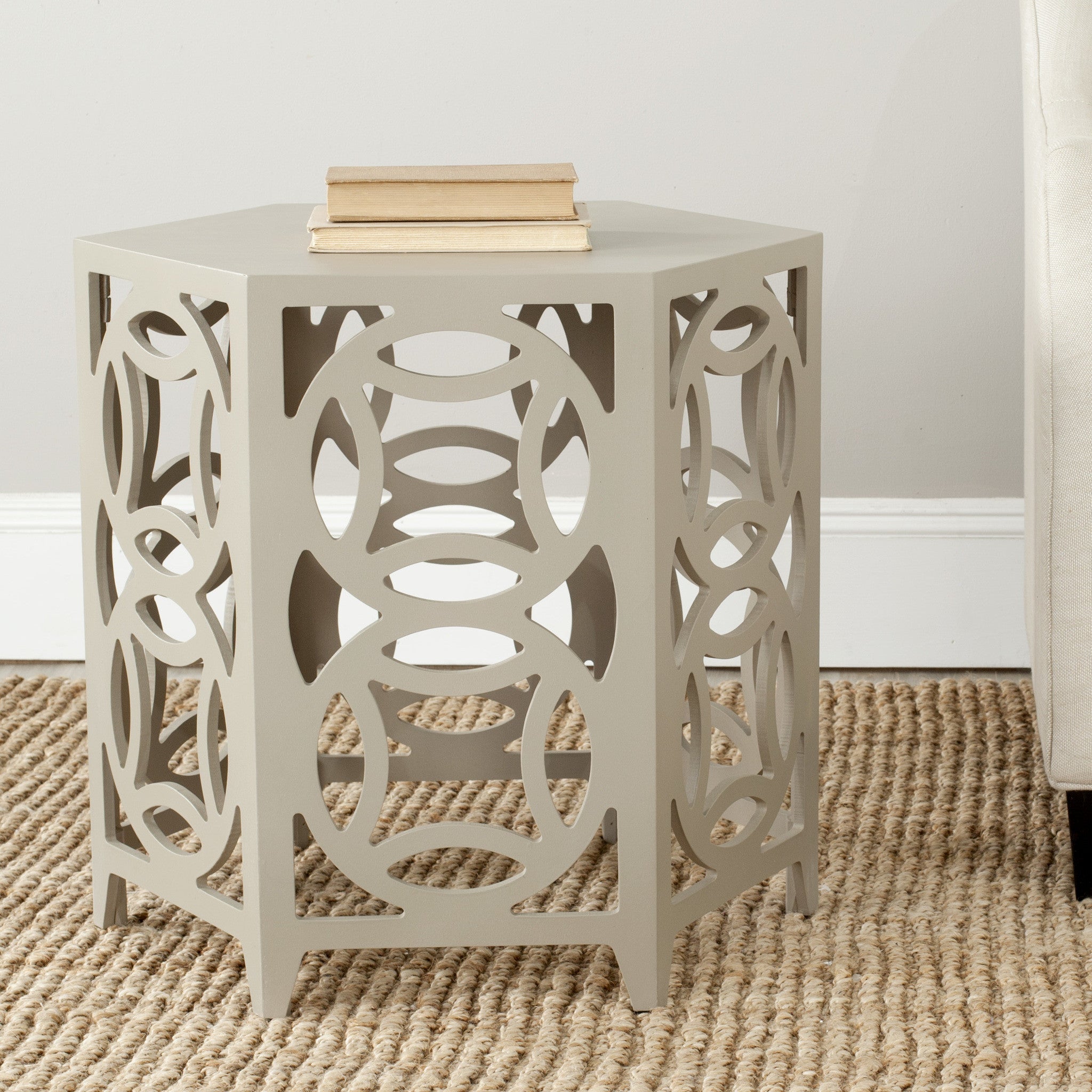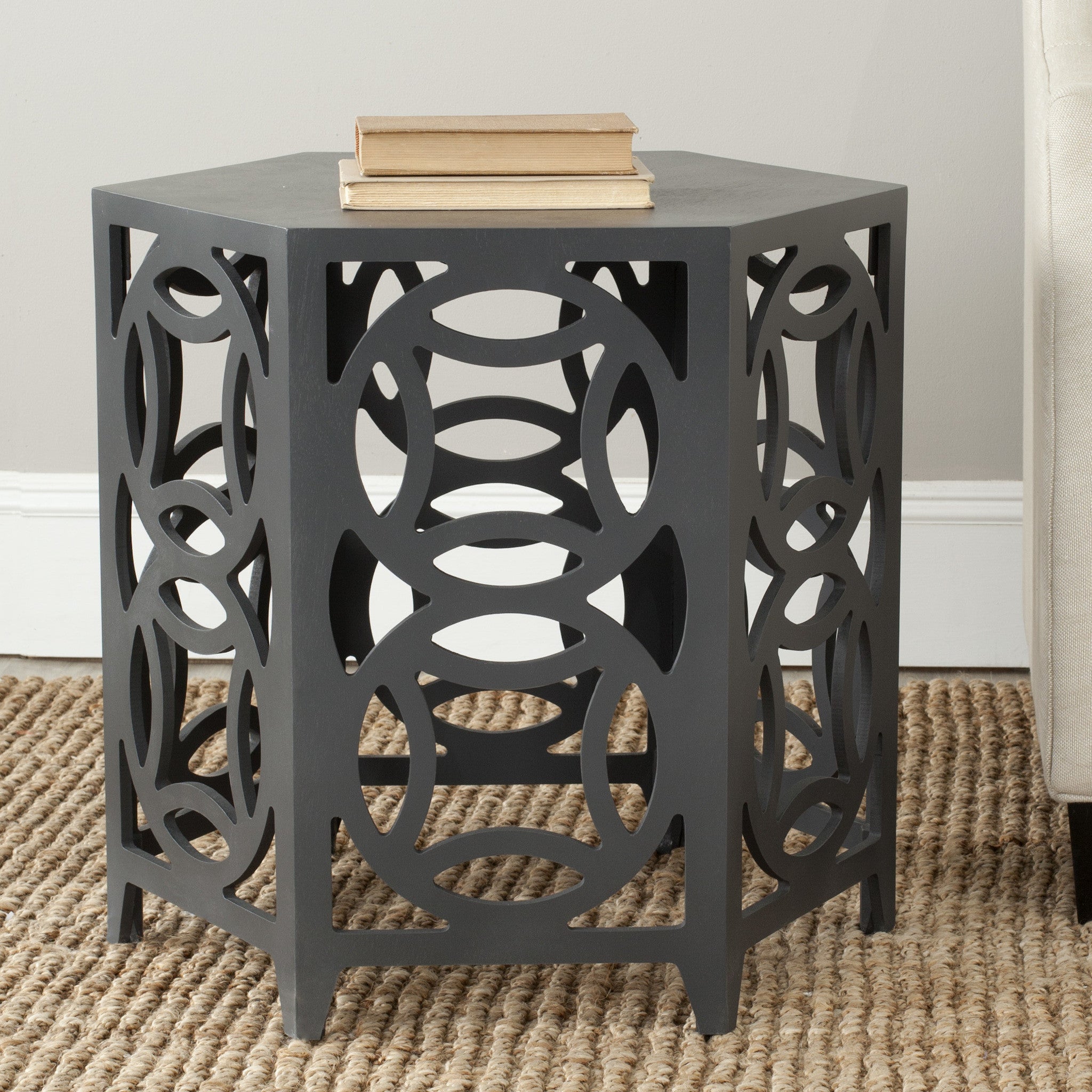 What's good is good. Embrace circular logic with the Natanya Side Table. This chic accent piece adds contemporary charm with interlocking circles and the clean lines of its hexagonal tabletop. Perfect for classic interiors that need a punch and at home in the modern abode, Natanya is crafted with Bayur wood in charcoal grey painted finish.