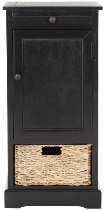 Relaxed and casual, the Raven storage unit in pine with vintage grey finish has an easygoing appeal that's perfect for a country casual style. With a roomy cabinet and one pull out woven basket, Raven makes stashing remotes, CDs and magazines a breeze.