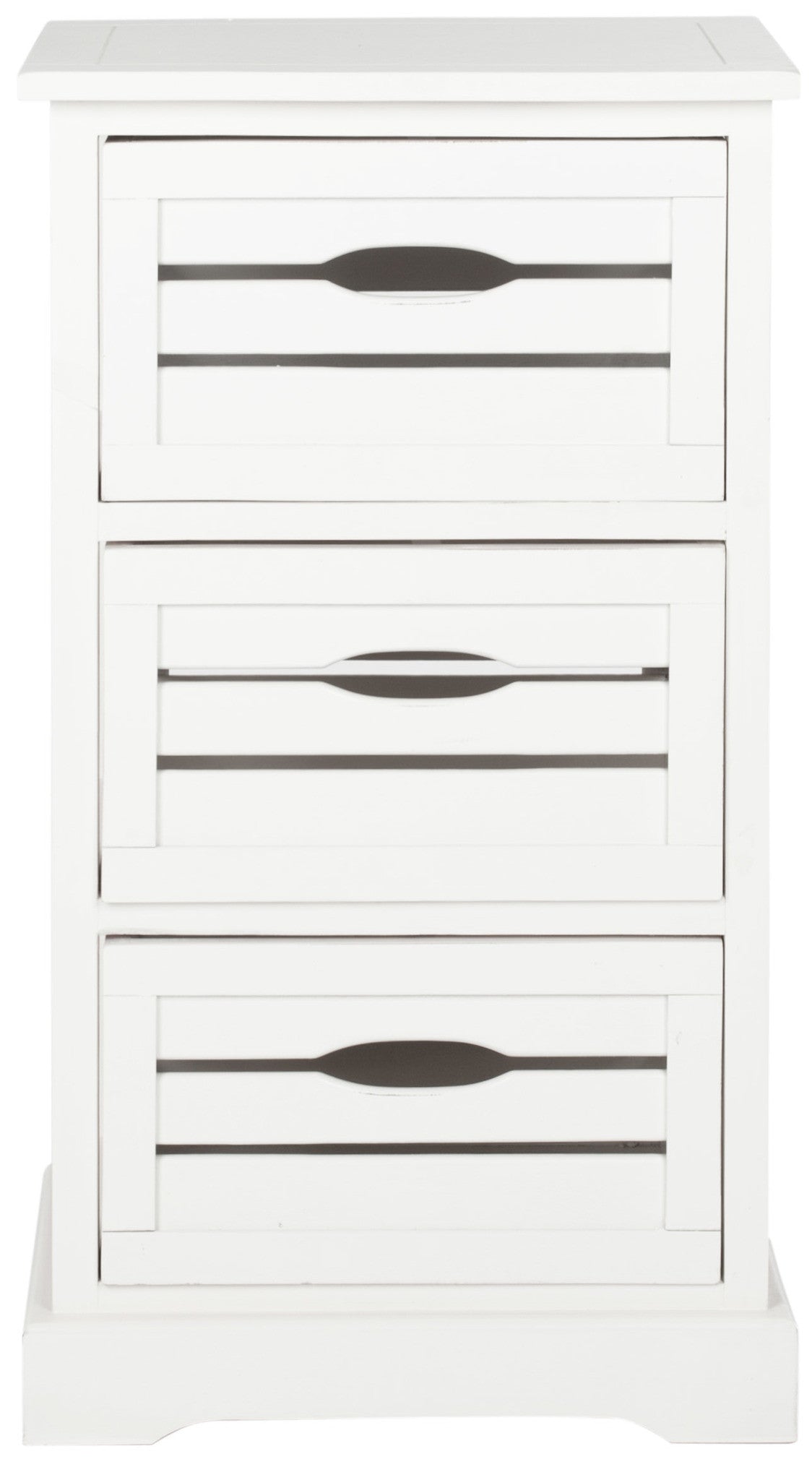 The stylish Samara 3 Drawer cabinet is the charming answer to all your organizational needs. Crafted of 100% pine wood in distressed cream finish, its three drawers and clean lines make it at home in the kitchen, home office or craft room.