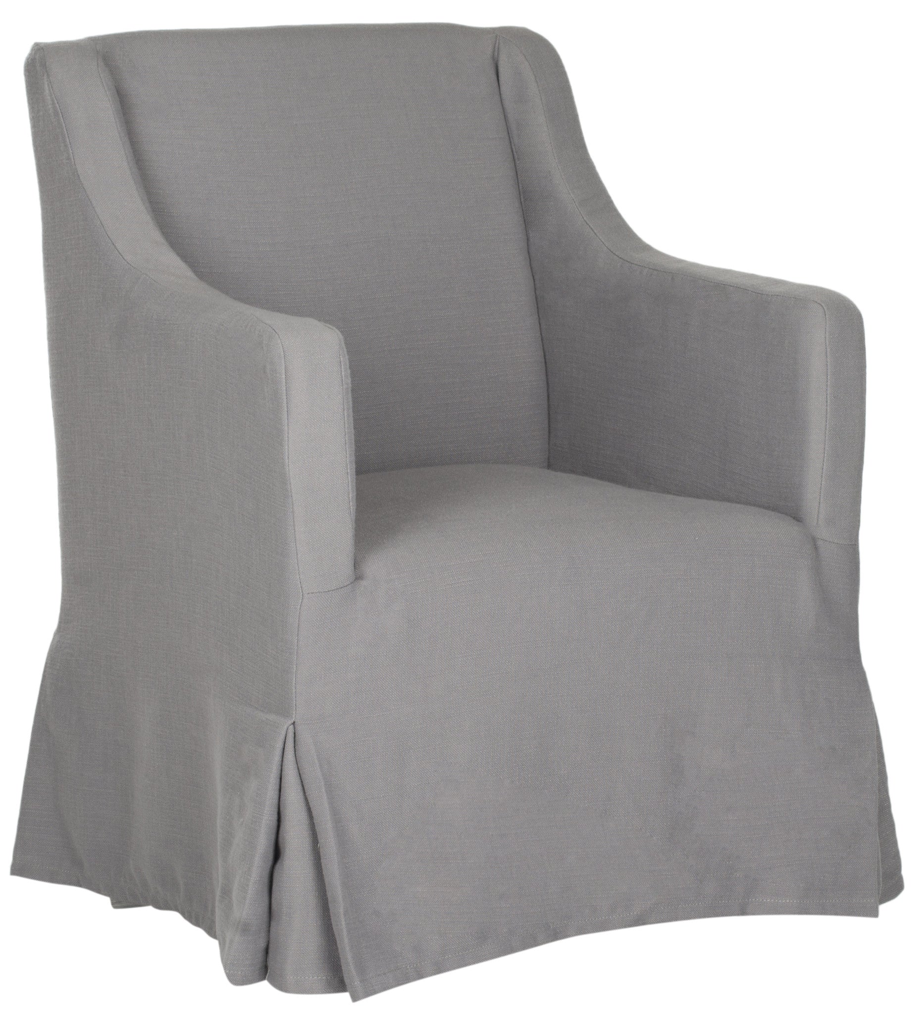 From shabby-chic to chic sophistication, the neatly tailored Sandra slipcover chair is covered in an over scale mattress ticking stripe in beige and cream linen. Gently sloping arms and invisible birch wood legs with java finish insure seating comfort. Detailed with front and back kick pleats, Sandra is designed for transitional and traditional interiors.
