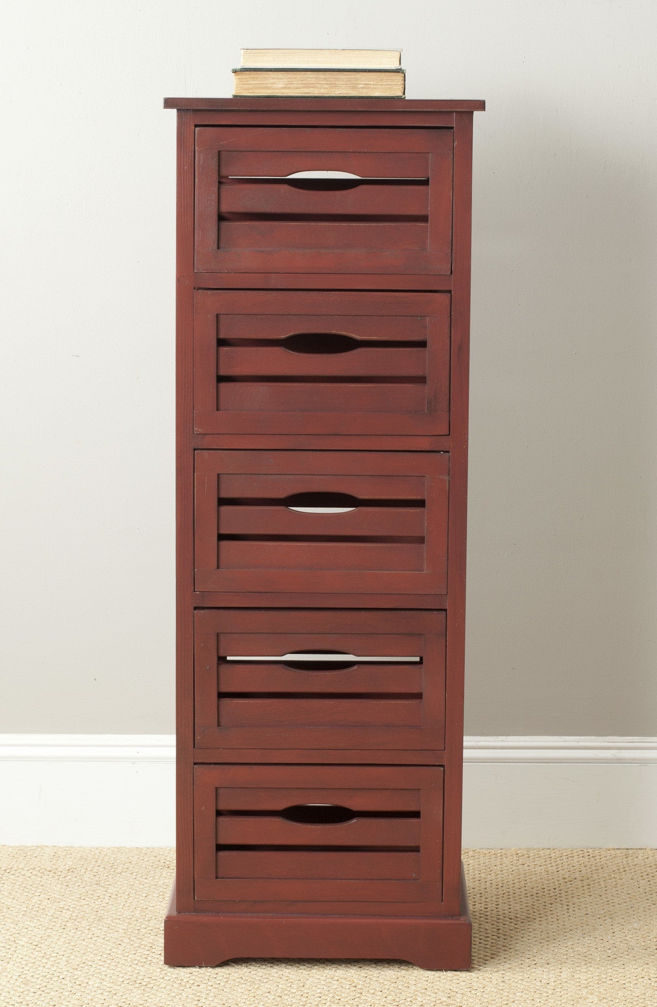 The classic lingerie chest is treated to a breezy coastal makeover with the Sarina 5-drawer cabinet. Crafted of pine with lightly distressed cream finish, the British Colonial frame is updated with open handles and slatted drawers inspired by old-fashioned fruit crates.