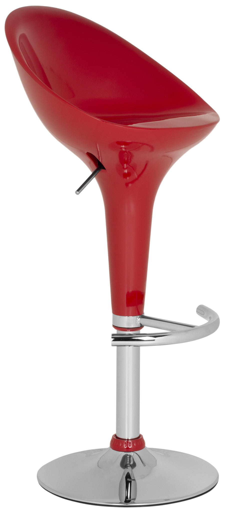 Inspired by the trumpet shape of the calla lily, the Zorab Gas Lift Swivel Barstool brings a new spin to any room in need of a pop of fresh, fun style. The curved back of its sturdy white ABS swivel seat contrast its sleek chrome steel base and footrest. Easy care and durable, Zorab adjusts from 23.6" to 32.5"