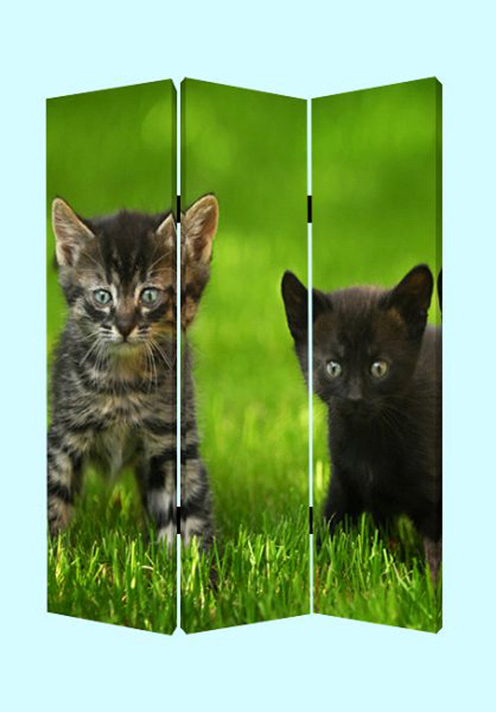 This is a 3 panel screen printed on canvas. The screen is two sided with different and complementary images on each side. It is light weight and very easy to move. The screen also has inspirational wall d©cor applications.