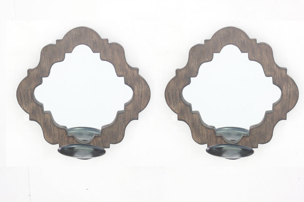 This set of two wood and metal candle holder will add style and lights to any room or settings. It has wooden frame with metal design.