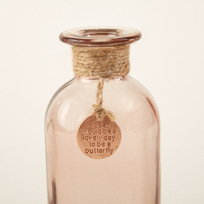Botanicus Set of 3 Jars with Hanging Copper Medallion with Saying Includes 3 Sizes/Colors: Small/Brown, Medium/Olive Green, Large/Mint Green - Glass/Jute/Alloy