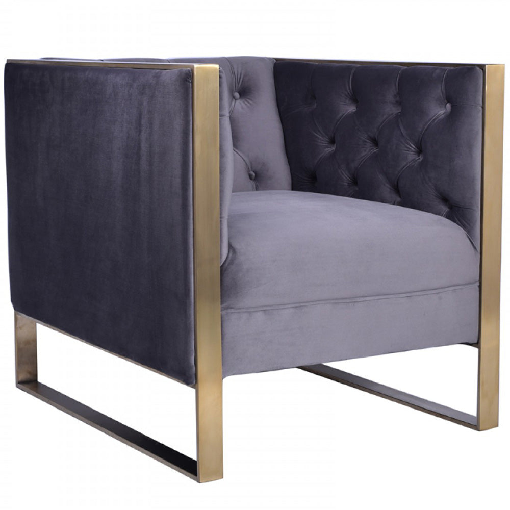 Divani Casa Carlos Modern Grey Velvet & Gold Accent Chair