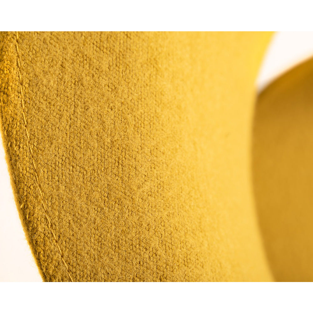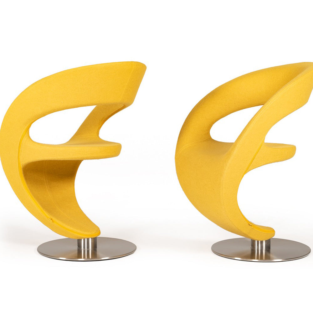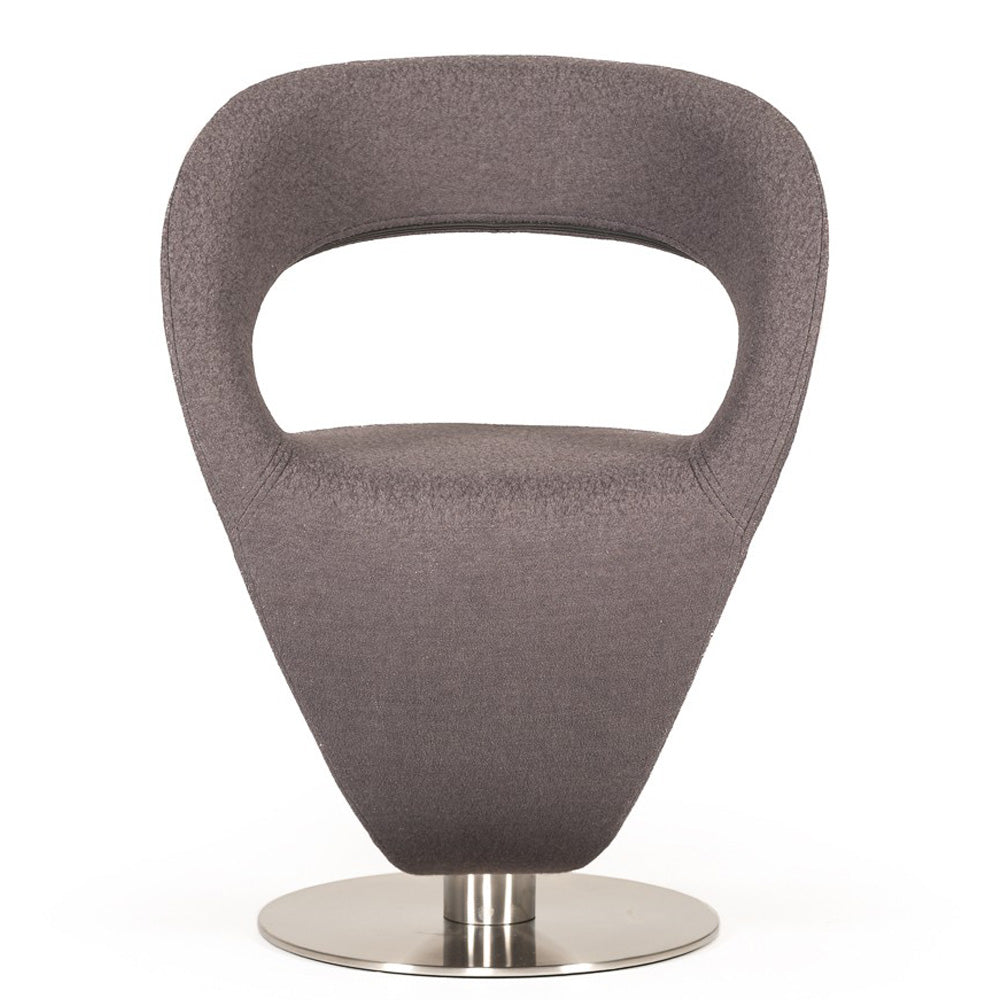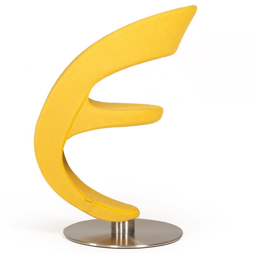 Gold/Grey wool fabric upholstery complements the unconventional design and creates a bright and ultra contemporary look. Material consists of 45% wool and 55% polyester for a textured feel. Accented with a 18” round stainless steel base. Available in white, grey, red and gold.