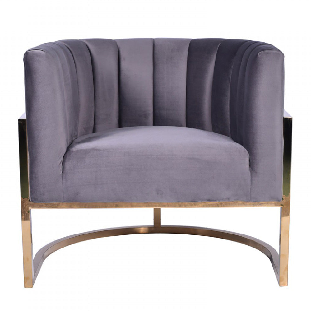 Modrest Landau Modern Grey Velvet & Gold Accent Chair