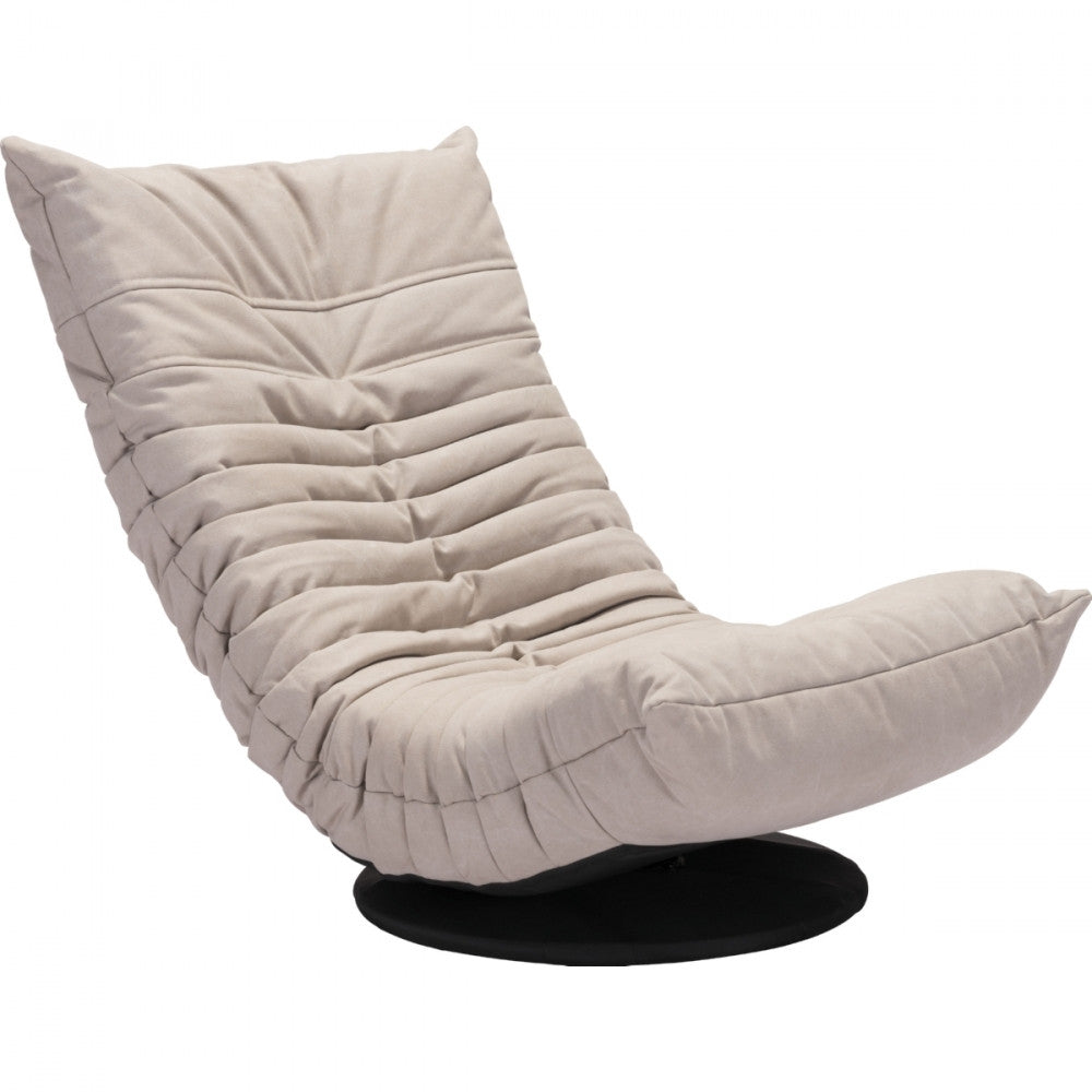 The Down Low swivel chair features a low profile urban design with plush tufted upholstered poly blend denim textured panels. Color options include Beige or Grey to either Swivel chair or matching loveseat.