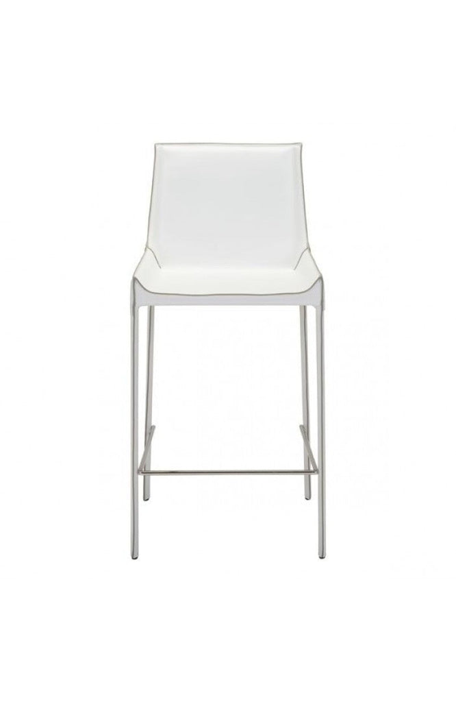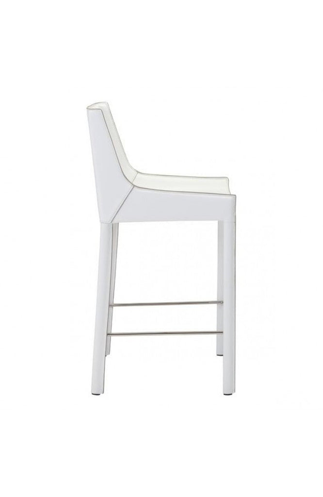 Streamline and sleek the Fashion bar chair features a slim profile with fully recycled leather upholstery creating a exposed seam finish from elegant high back to feet design; accented with sturdy chrome footrests. Color options include black or white recycled leather.