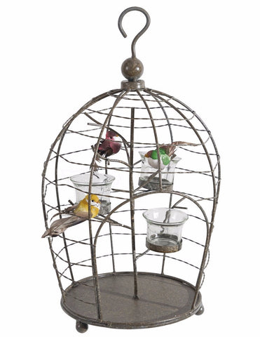 Metal Cage & Birds TeaLights Candle Holder - Set Of 2