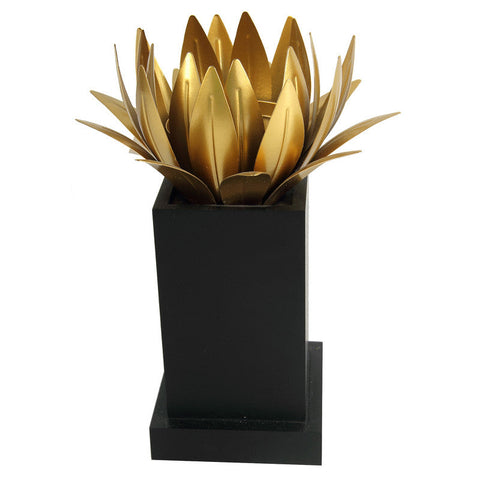 Golden Lotus Wood/Metal Candle Holder - Set Of 2