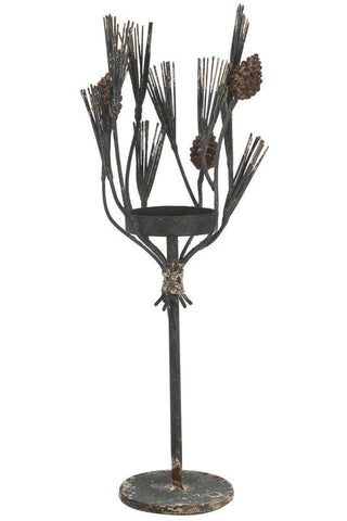 Antique Silver Urban Forest Candle Holder - KIH39631