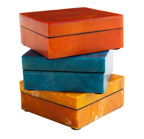 Gold Leaf Design Group Resin Agate Box, 3.75"Sq - Set of 4