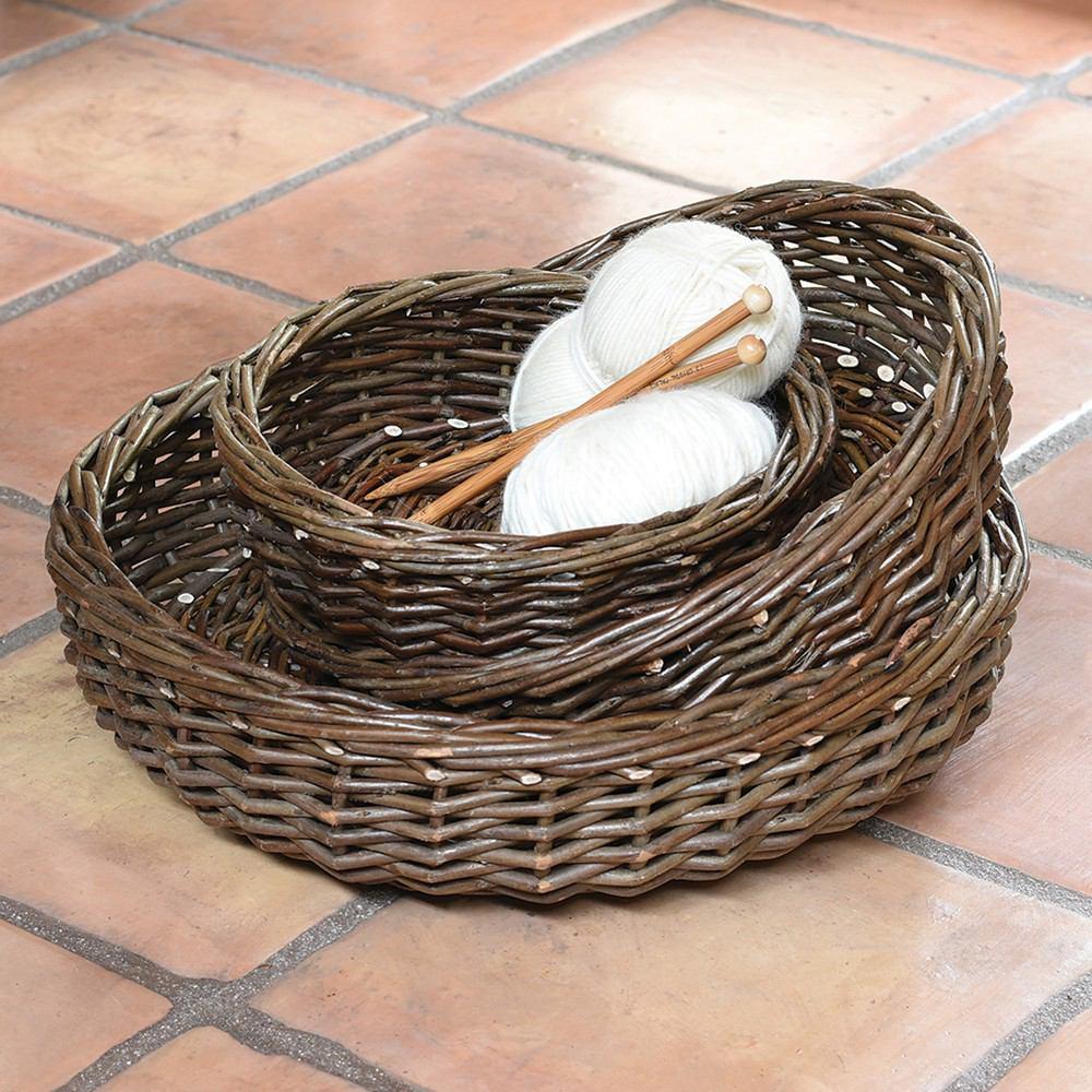 Woven by hand using select quality materials and traditional methods, the complex weave of each Willow Basket tells the story of the time and meticulous effort spent to craft each piece. Weaving is a centuries-old trade that was driven during the Industrial Revolution to fill the increased demand for functional containers. Willows are strong and flexible and the natural kink in each stem gives tightness and resilience to the finished basket. The generous sizes and assortment in shapes of our Willow Baskets enable them to be mainstay storage solutions in the home and garden with a quality that will allow them to become heirloom pieces for generations to come. Bring indoors during rain and frost to preserve longevity.