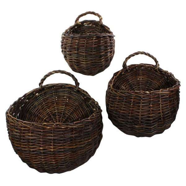 Woven willow baskets lend themselves to beautifully showcasing a wide variety of plant life. The set of three round baskets include looped handles perfect for creating stunning wall hanging displays