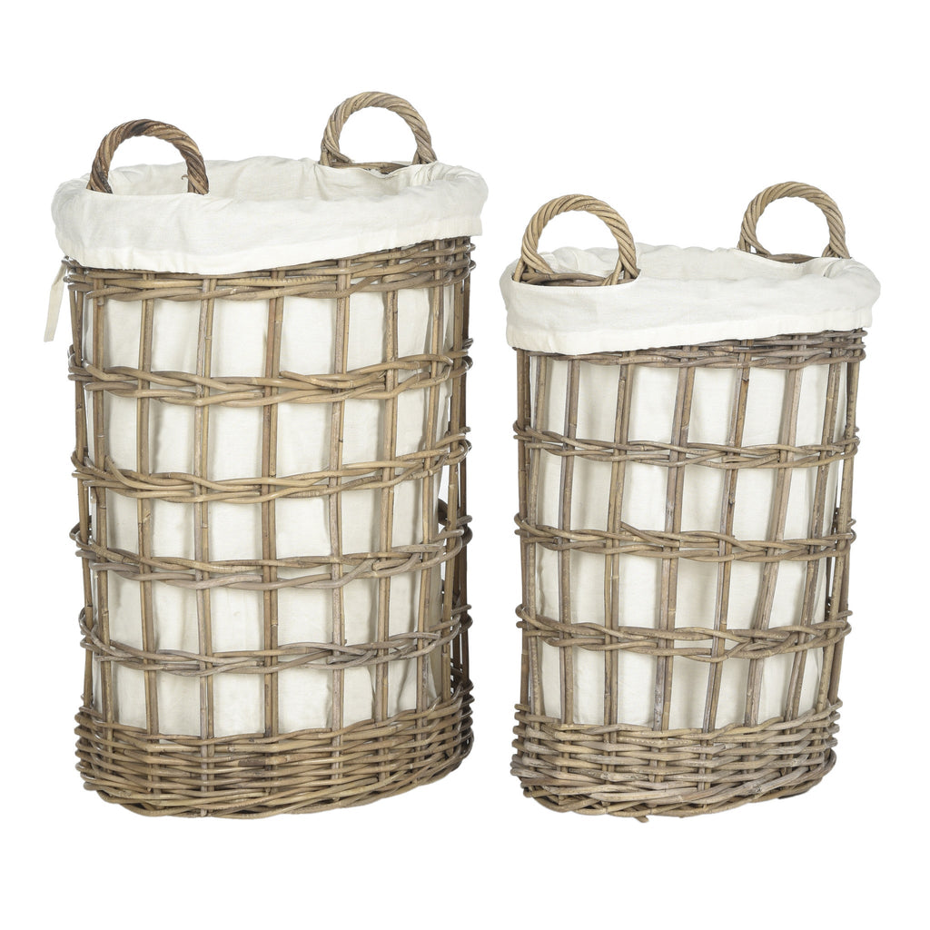 The utilitarian hamper gets a fashion makeover in this stylish grey basket style updated by master weavers with contemporary cutouts in its kubu rattan form. Easy to carry, with self handles and even easier on laundry day with a removable cotton liner.