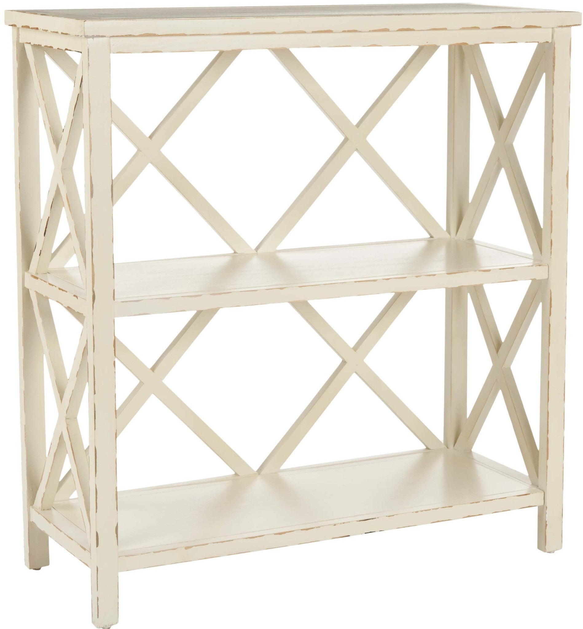 The Liam open book case, crafted from pine in a distressed ivory finish, proves a versatile, multi-functional workhorse. With a light-weight stature and X-shaped back, Liam's casual styling make it ideal for country and beach settings in rooms throughout the home, even the bath. MiNr assembly required.