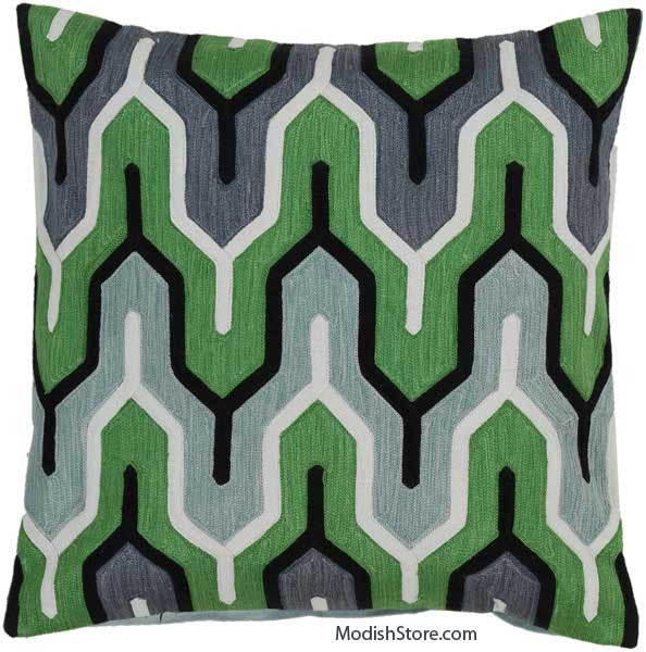 A fun geometric pattern covers this Surya Pillow. Available in 3 colors.