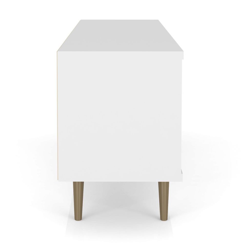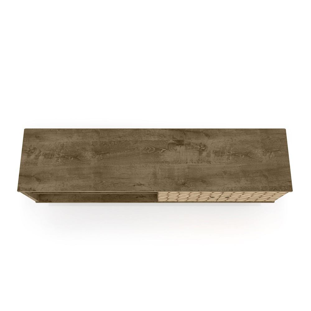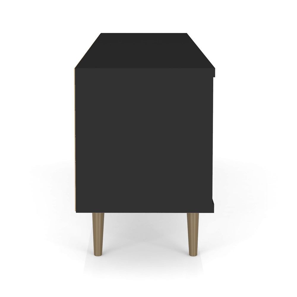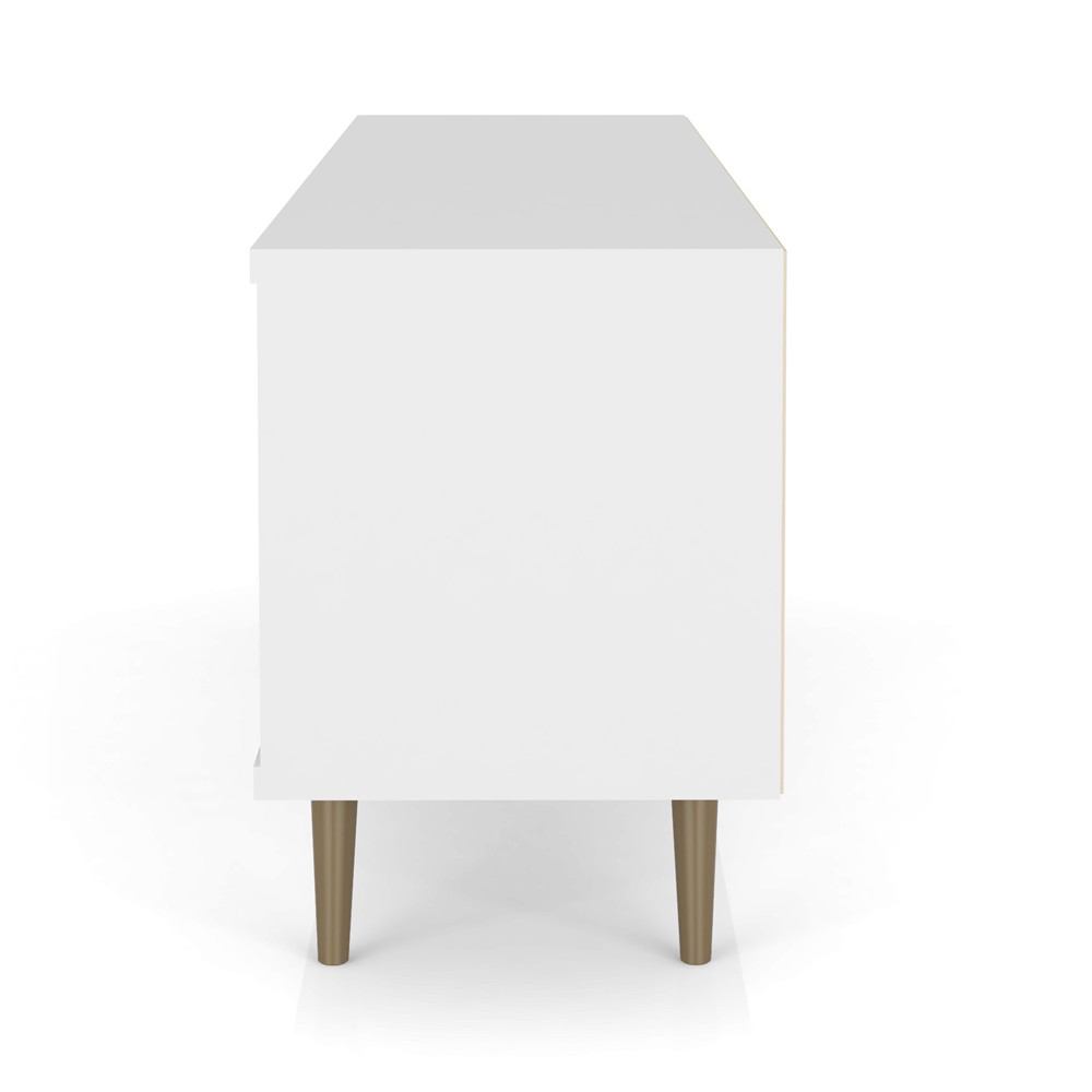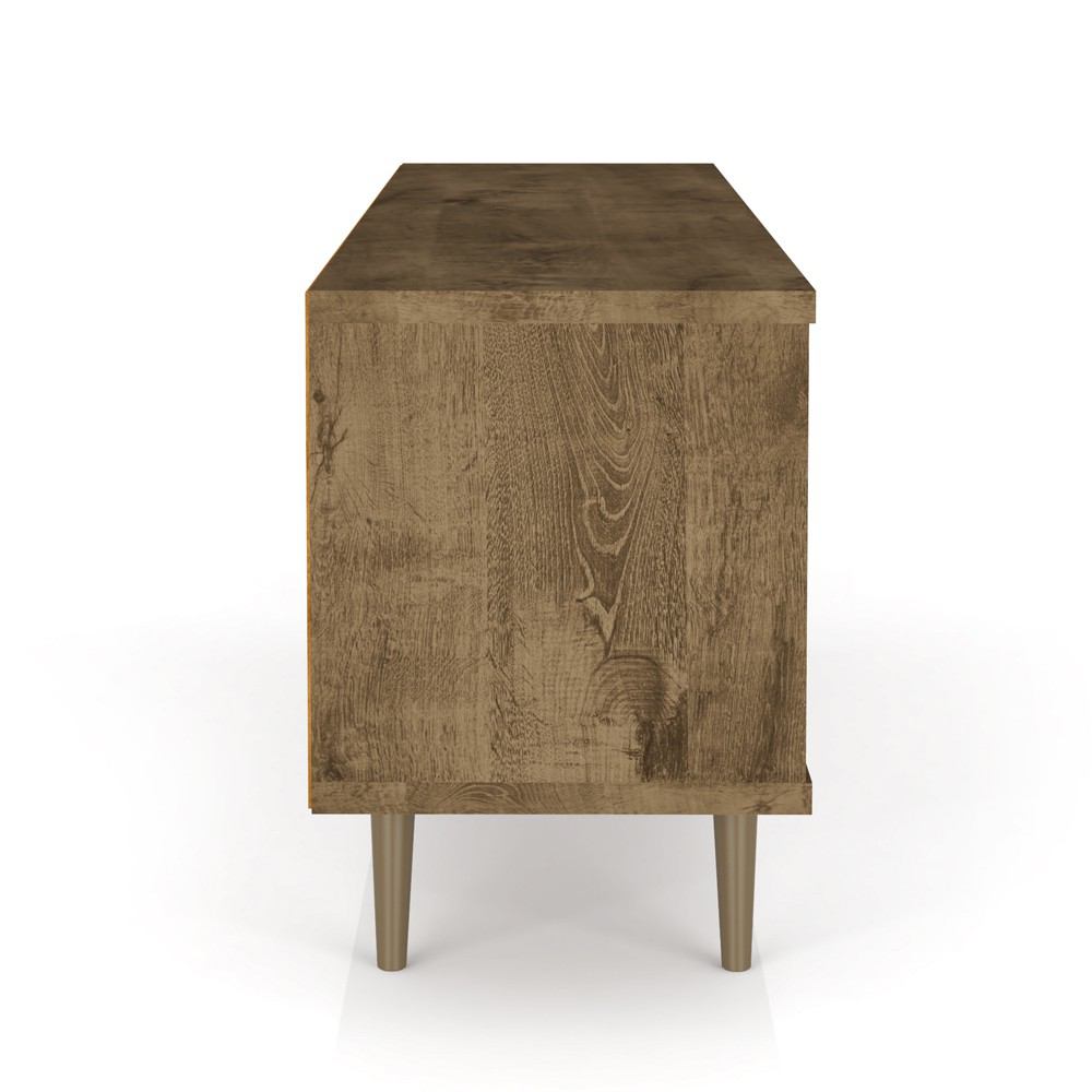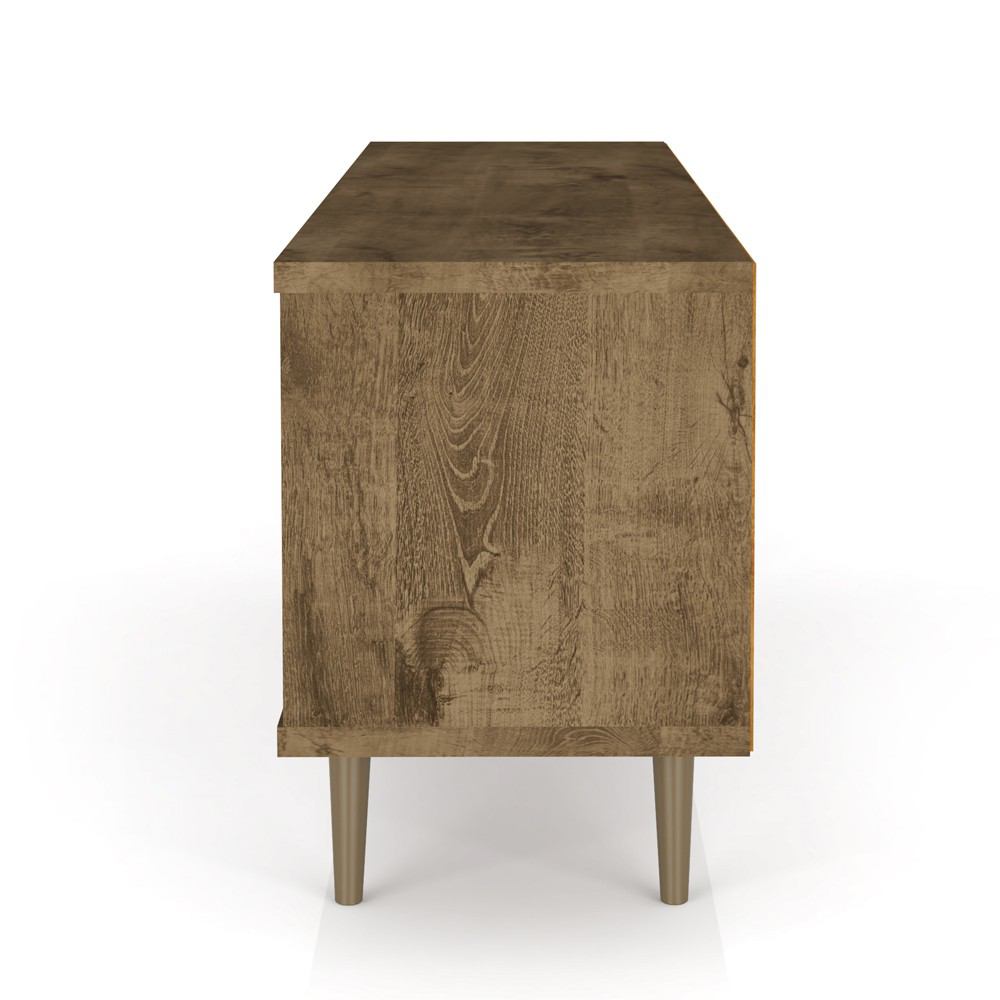 The Liberty 62.99 Mid-Century Modern TV Stand is a high quality, beautifully crafted, functional unit. Featuring two open shelves, and one large concealed compartment perfect for stashing DVDs, board games, electronics, and media accessories, this entertainment center is the ultimate gathering place and will create a statement in any space. Artful grooves mix well with any decor and splayed wooden legs add character and ease for moving.