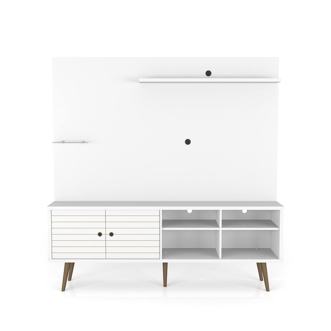 The Liberty 70.87� free-standing entertainment center bring the family together, in one stylish Mid-Century modern and functional quality-crafted design. Grommets for wire and cable management keep this piece functional and convenient, ensuring all your media accessories have a place, with discreet storage and open shelving. Gather the family together for an in-home movie night and enjoy the memories and moments this piece will provide.