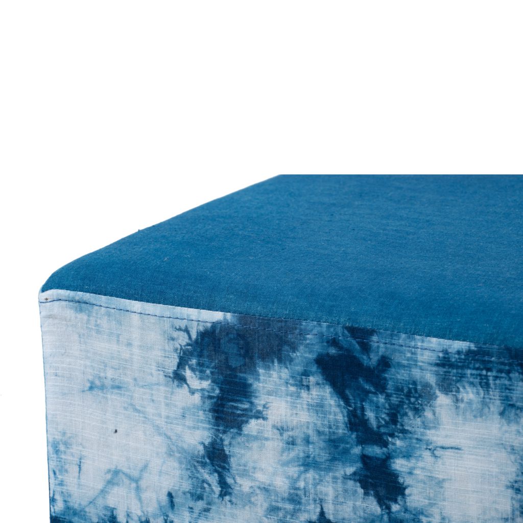 Enjoy convenient extra seating and a dynamic look with this Indigo Stool featuring rich shades of blue and crisp white. With its ocean-like, tie-dye effect, this stool fits an ocean- or beach-themed room while its sleek silhouette complements a modern room. Add this stool to an airy sunroom, eclectic office, or chic living room for seating that adds bold visual interest and useful function.