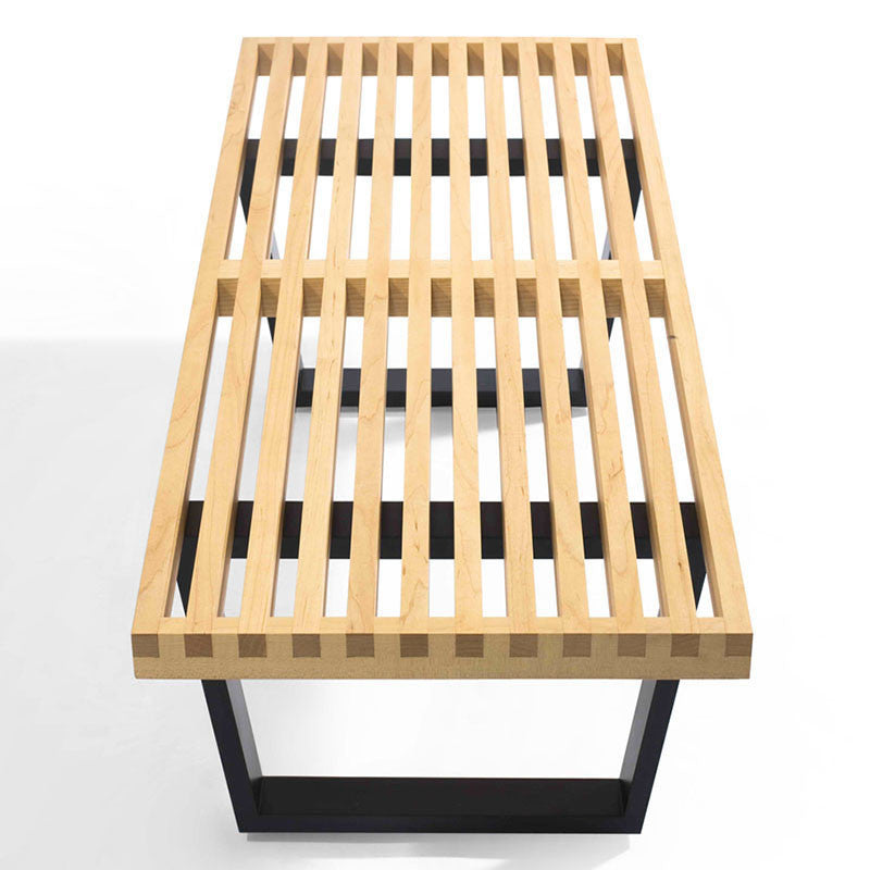 Inspired by a true modern classic, our platform bench is extremely versatile.Can be used as a coffee table, bench, side table, plant stand, or low console table.Slat Bench A is 48" long and has a 1.5" thick American Maple solid wood top with birch legs painted black.