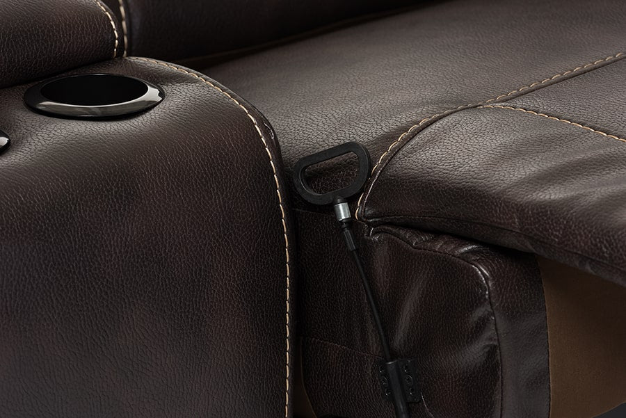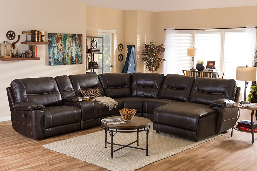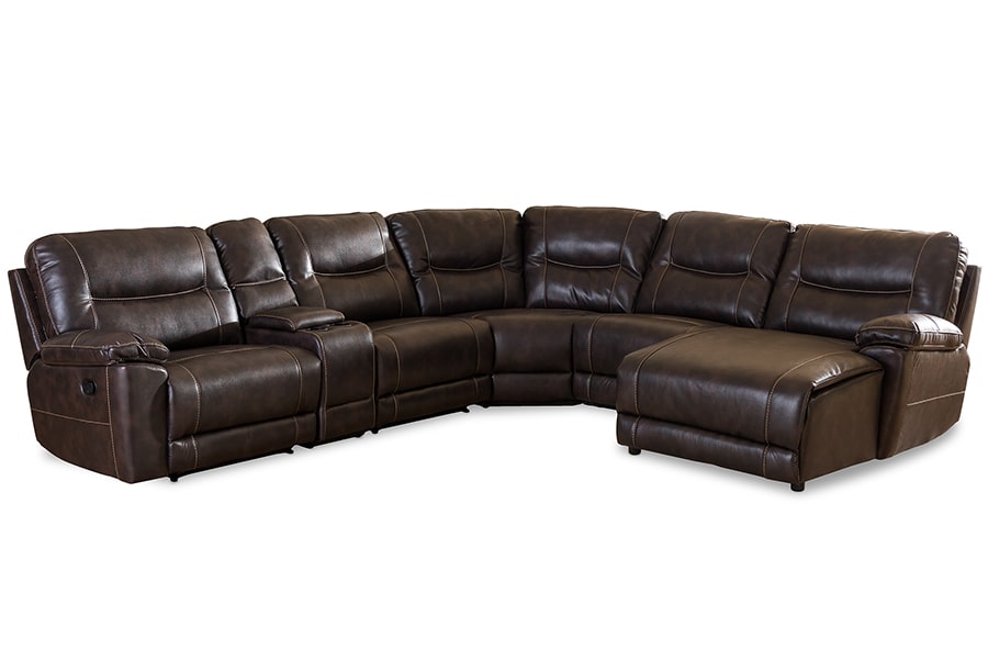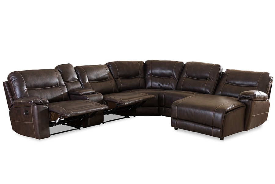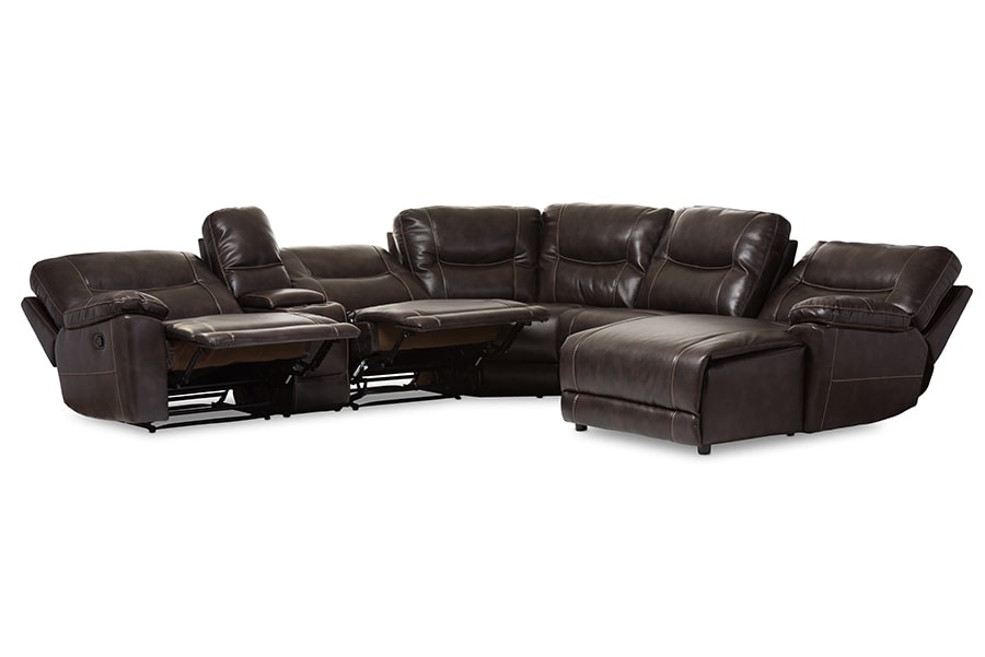 Baxton Studio Mistral Modern and Contemporary Dark Brown Bonded Leather 6-Piece Sectional with Recliners Corner Lounge Suite