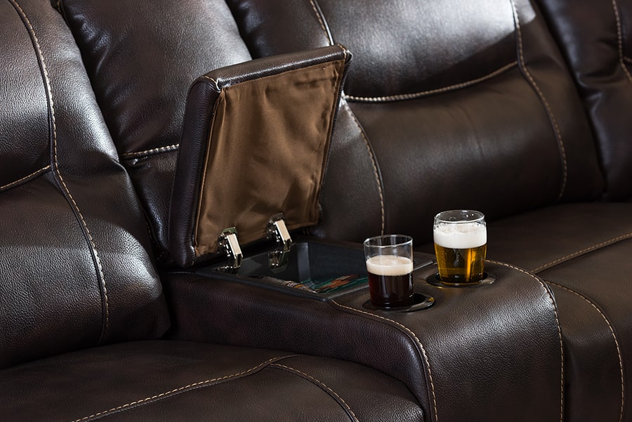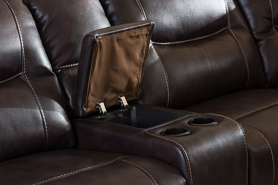 For ultimate comfort, the back of the chaise could be pushed back for about 45 degree to relax. There's room for everyone to snuggle in for some fun time together with this living room set. White contrast stitching's add more contemporary to the set.