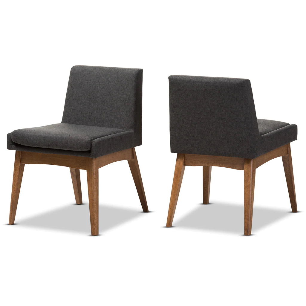 Enriched with finer detailing, the angular and cushioned Nexus dining side chair embraces comfort. Constructed of solid rubberwood frame in dark walnut finishing, the Nexus is upholstered in dark grey polyester fabric.
