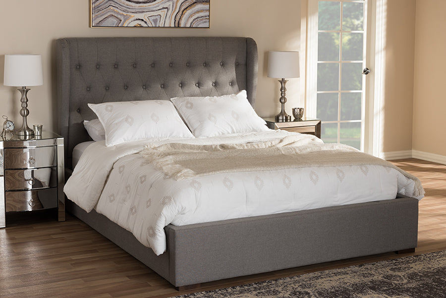 With a statement of humility and character, the Penelope platform storage bed features classical design touches such as graceful curved wings on the sides of the headboard and button-tufting design, alongside straight lines and complex textures, bring an abundance of charm to your bedroom. Upholstered in light beige polyester fabric, the platform bed is foam filled for your ultimate comfort. The Penelope platform bed offers convenient and smart storage solution for your bedroom.