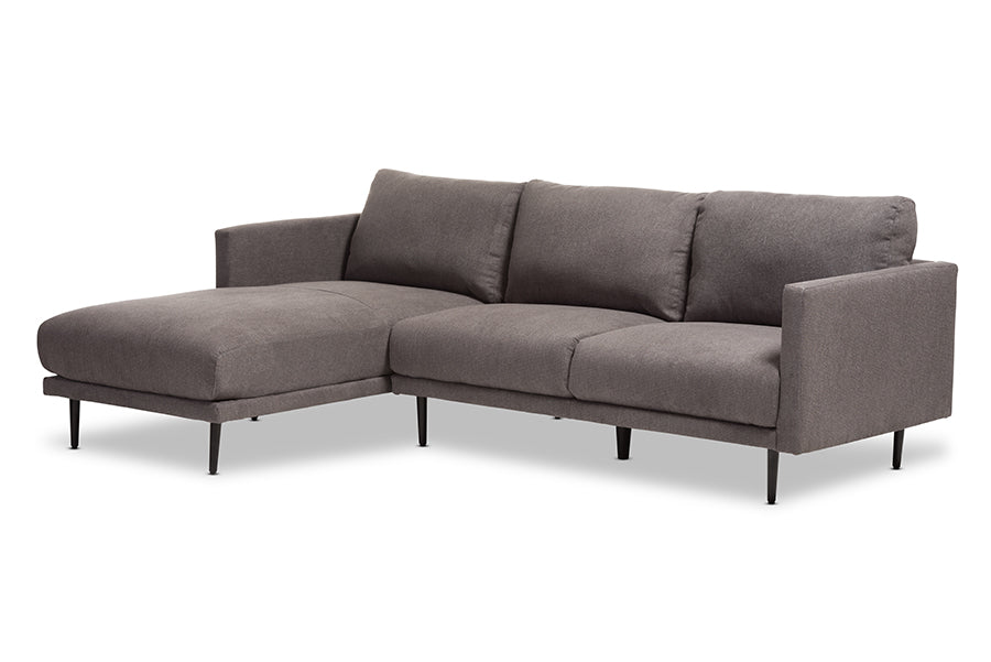 Baxton Studio Riley Retro Mid-Century Modern Grey Fabric Upholstered Left Facing Chaise Sectional Sofa