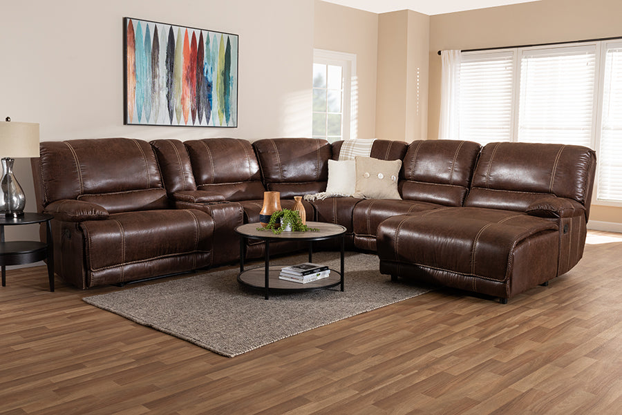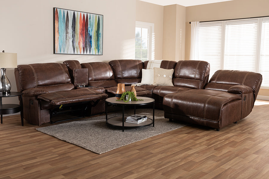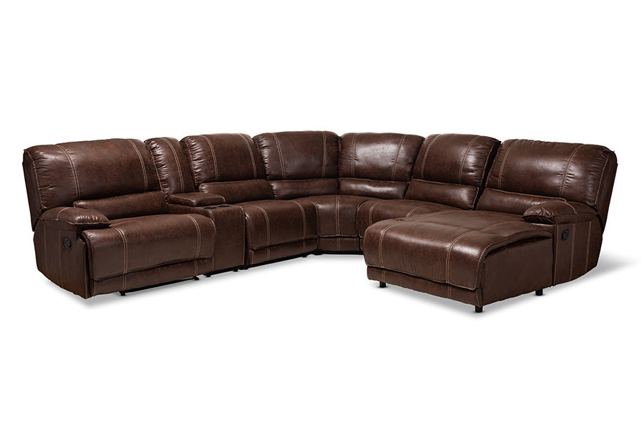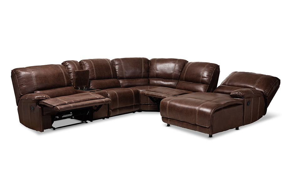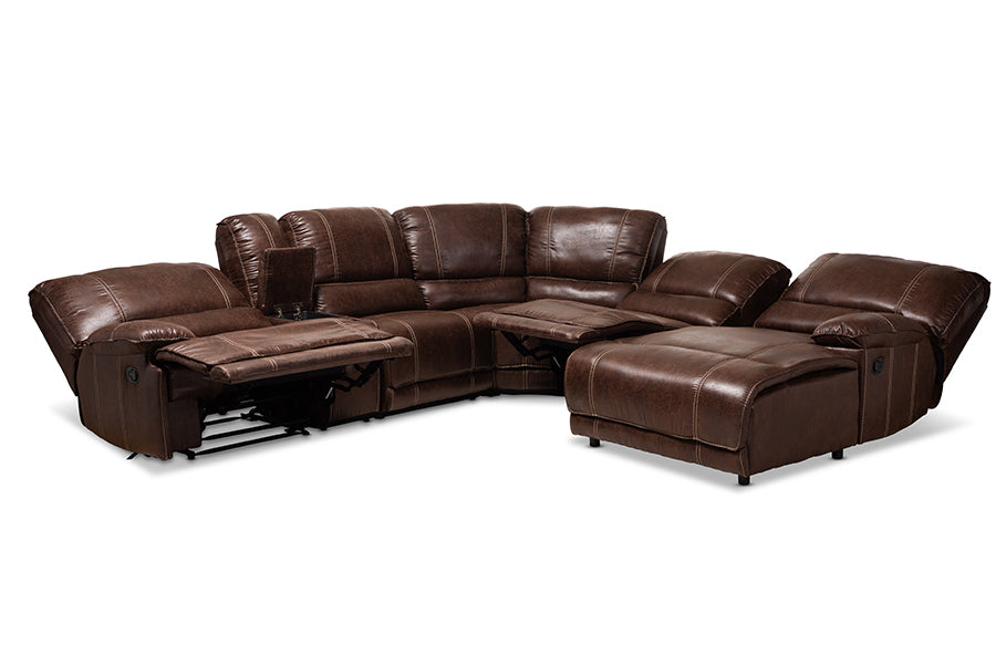 Create an oasis of comfort in your living room with the Salomo sofa. Constructed from sturdy plywood, the Salomo is upholstered in faux leather and padded with foam for plush comfort. This 6-piece sectional sofa includes an armchair, armless chair, and a chaise equipped with manual recline capability for the utmost relaxation.