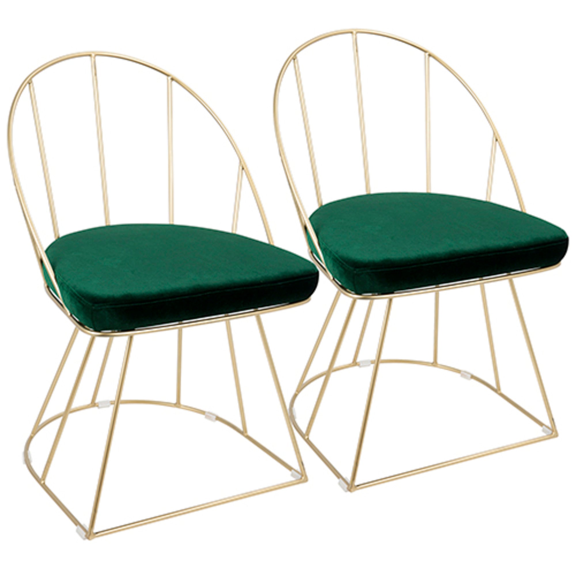 Opulent and confidently contemporary - that's the Canary Dining Chair from LumiSource. Features a captivating cage-like gold tone metal base, subtle curved backrest, and an elegant velvet seat available in various modern colors. Definitely a bold touch of glamour for your seating needs.
