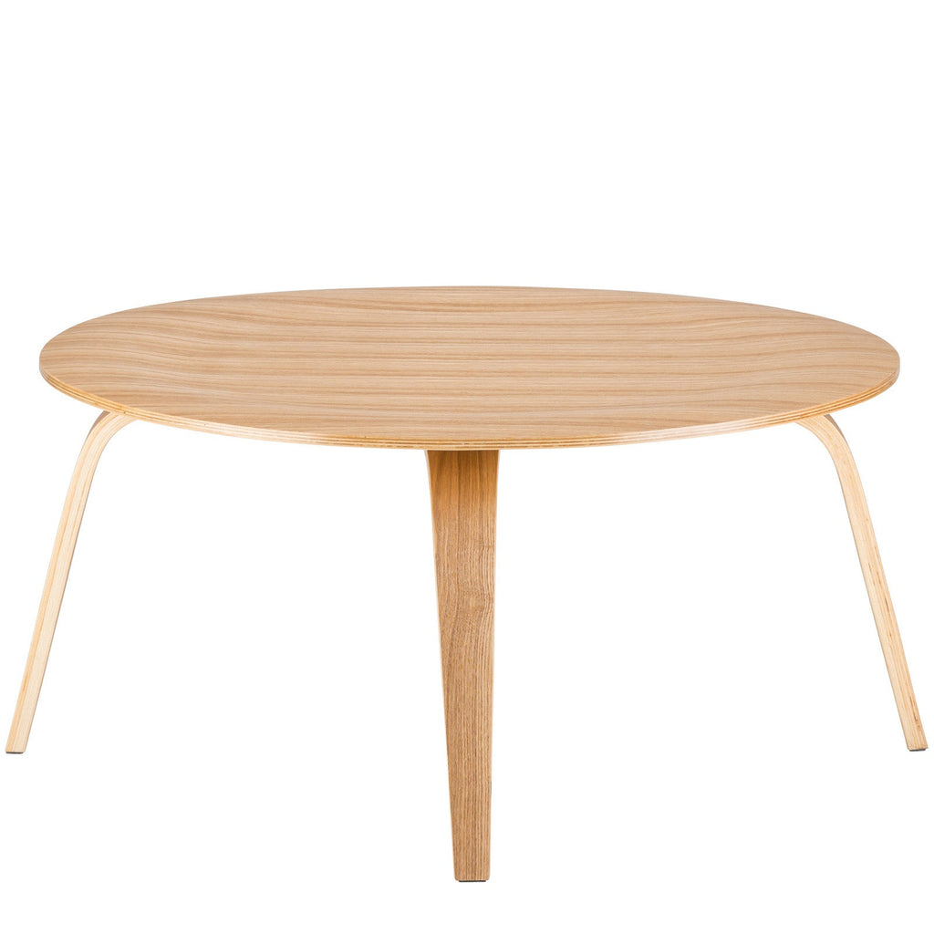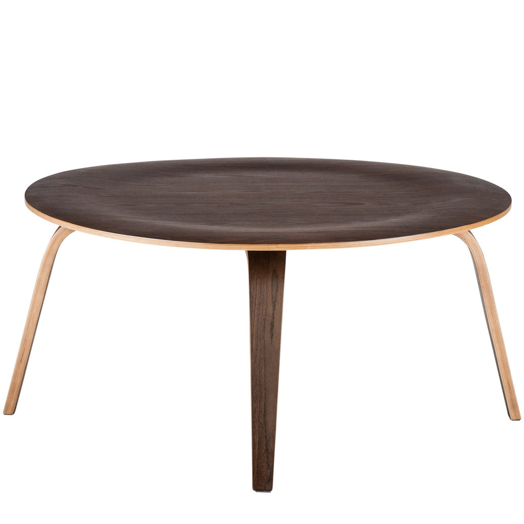 Sleek, clean, and modern”this Isabella Coffee Table has everything you want and more. A sophisticated look with relaxed underpinnings, this table features molded wood veneer that create gentle curves and intriguing style. The base of the table features curvy, outwardly angled legs. The round tabletop boasts an eye-catching dip that creates a sleek, tray-like appearance. Unify your sitting area with this exceptional mid-century modern-inspired coffee table design.