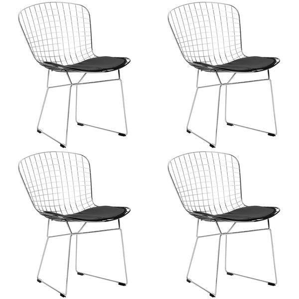 Enjoy the airy, minimalist aesthetic of the Morph Side Chair. Designed for the modern home, this chair creates a luxurious look in any room. Built with a solid chrome steel frame, the Morph features a wide, curved back with a grid design that lends geometric charm. The seat of the chair features an appealing curve and is covered with a leatherette seat pad with Velcro strapping for easy comfort. A simple, clean base is equipped with plastic, non-marking feet that make this chair an easy choice for any type of flooring.
