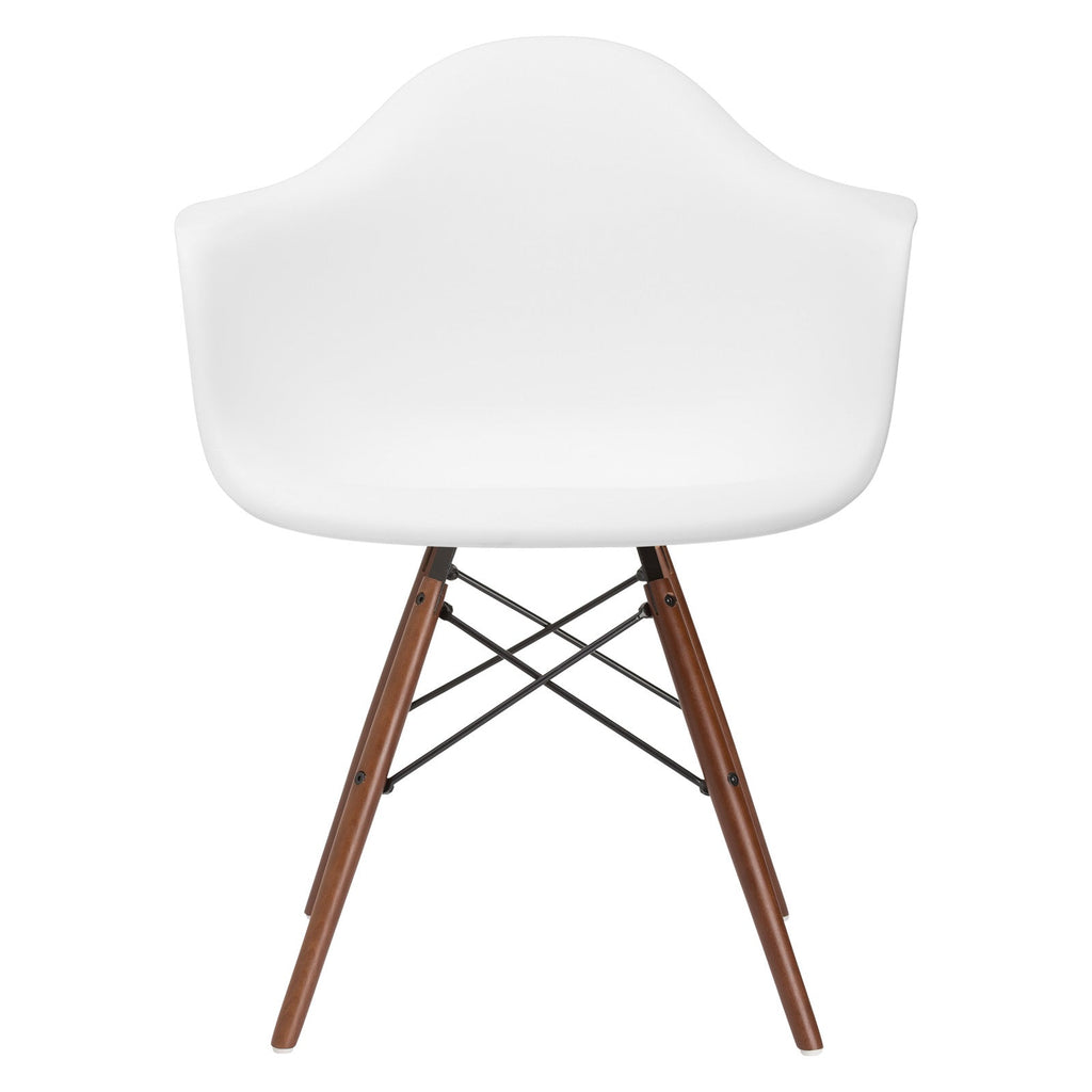 Veer off in a modern direction with this Vortex Arm Chair in your den or living area. Designed as a statement piece, this chair creates a cool, modern vibe that can't be understated. The curvy, inviting seat is made from plastic and features a chic matte finish. The base is crafted from contrasting wood and wire, offer detail and angular appeal to perfectly juxtapose the soft curves of the seat and back. Add this chair to a stylish, sunny spot in the den, or create a sophisticated sitting area in your living space.