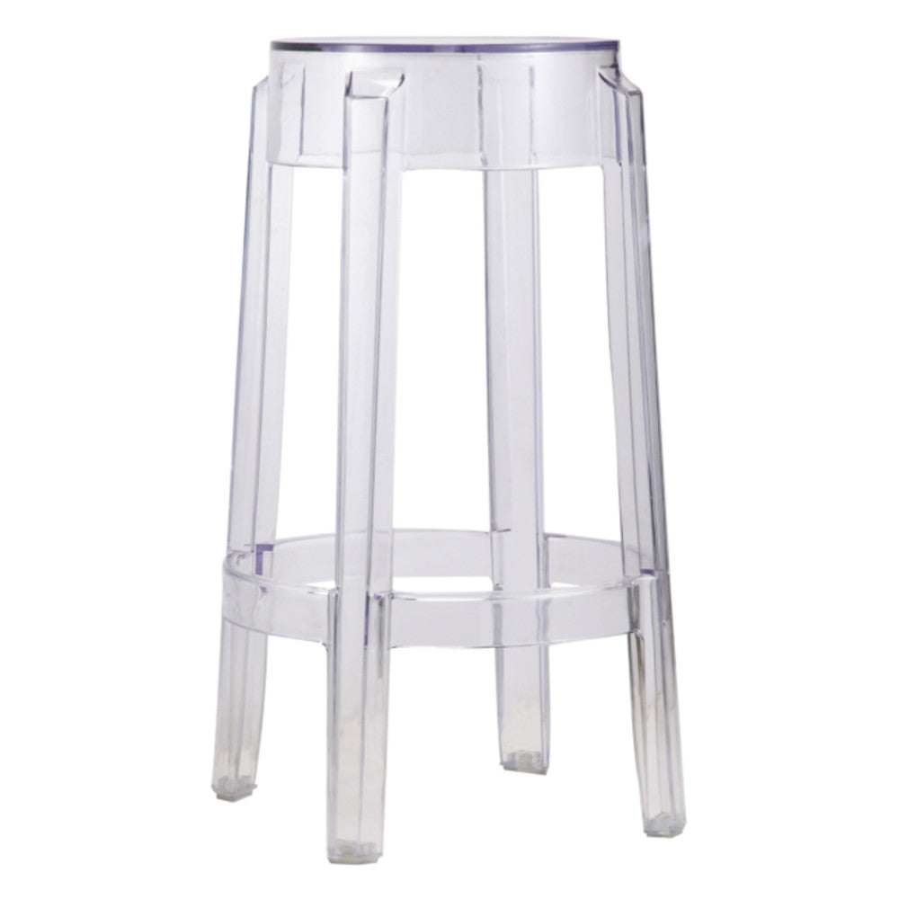 In spite of the evanescent and crystalline impression, strong resistant to blows, scratch proof and weatherproof; as many as six pieces can be piled up. With a strongly charismatic character and outstanding aesthetic appeal, this stool fits perfectly into every home or public area with elegance and irony. This item is a high quality reproduction of the original.