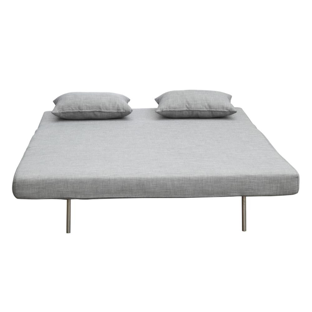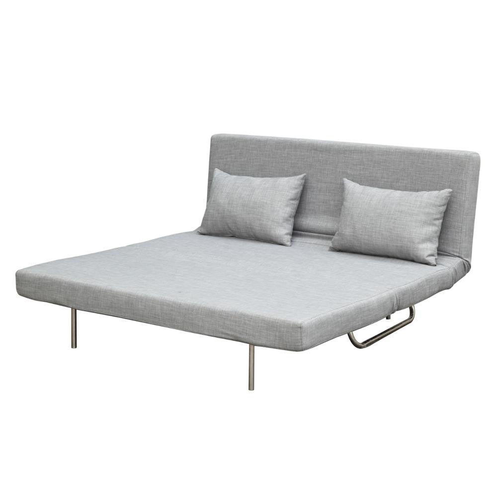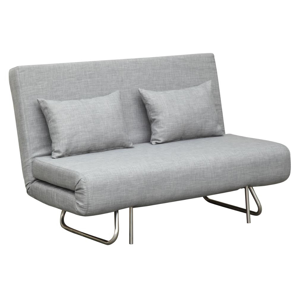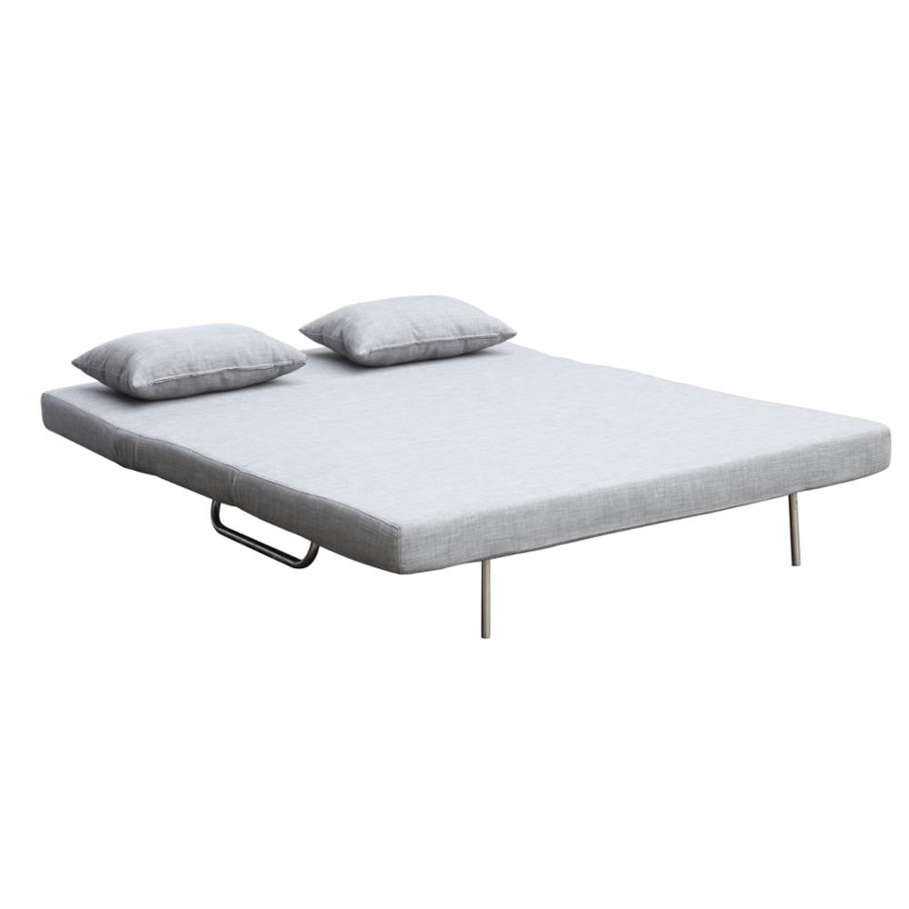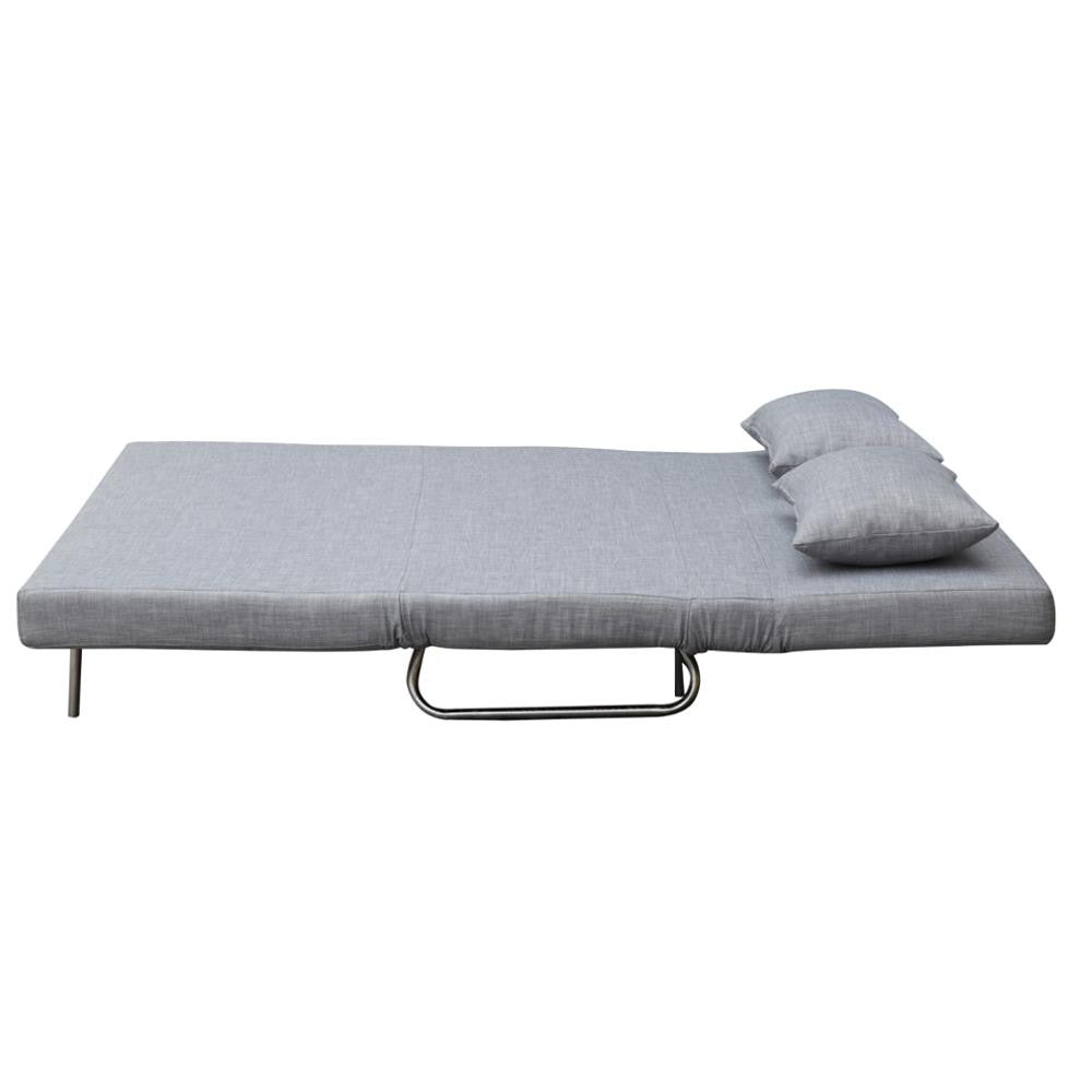 Functional versatility describes this minimalist modern styled sofa bed. Ease of use with a classic clean design, the Sabatino Loveseat Sofa Bed sits on a turned steel frame, covered in upholstery fabric and includes two matching pillows.