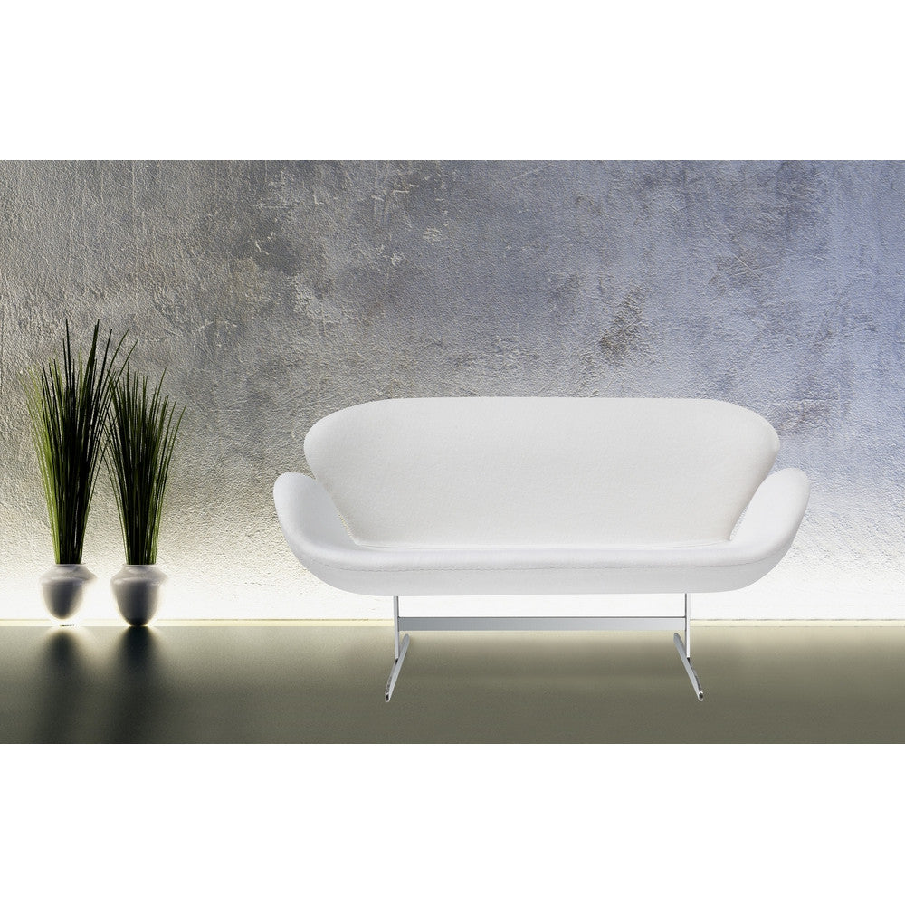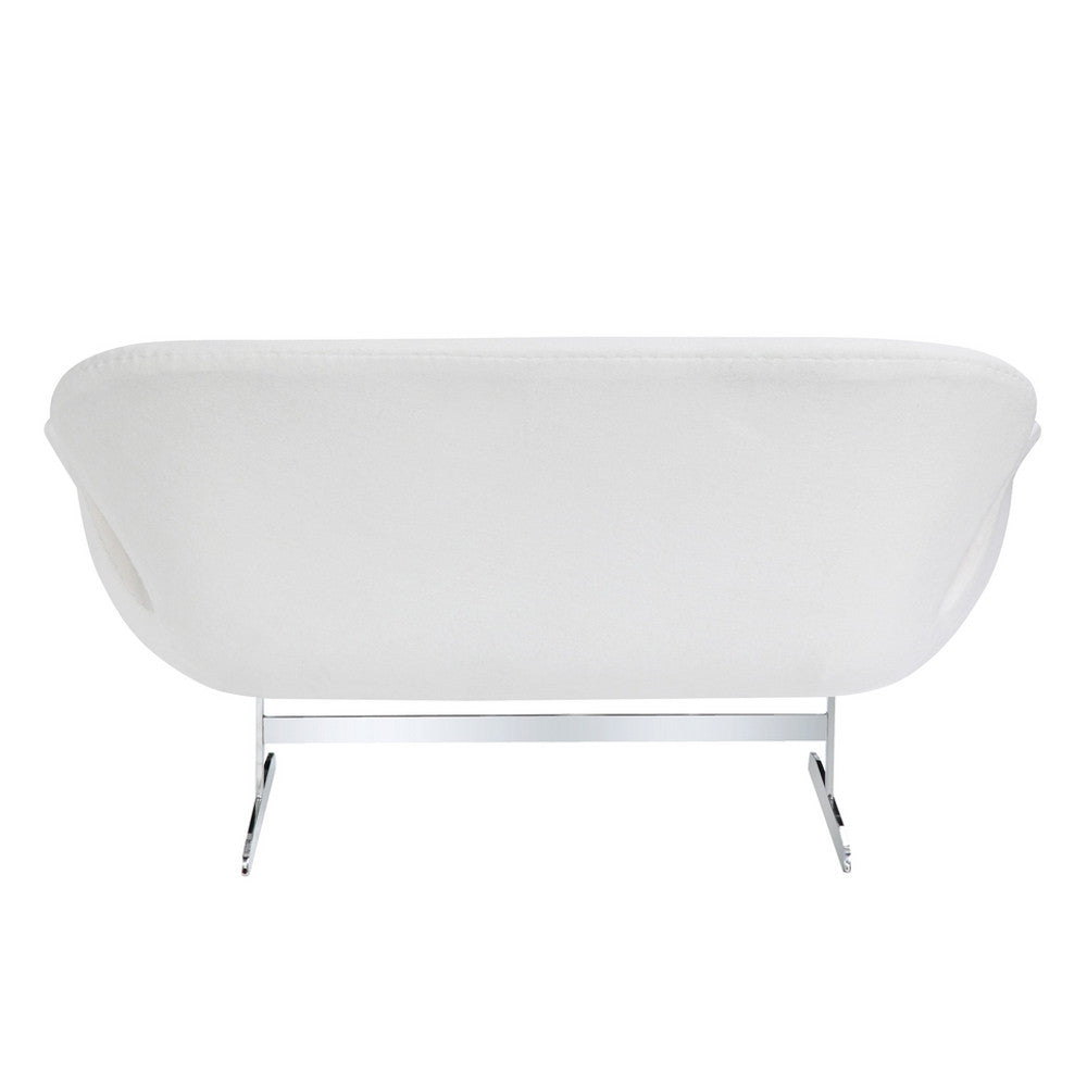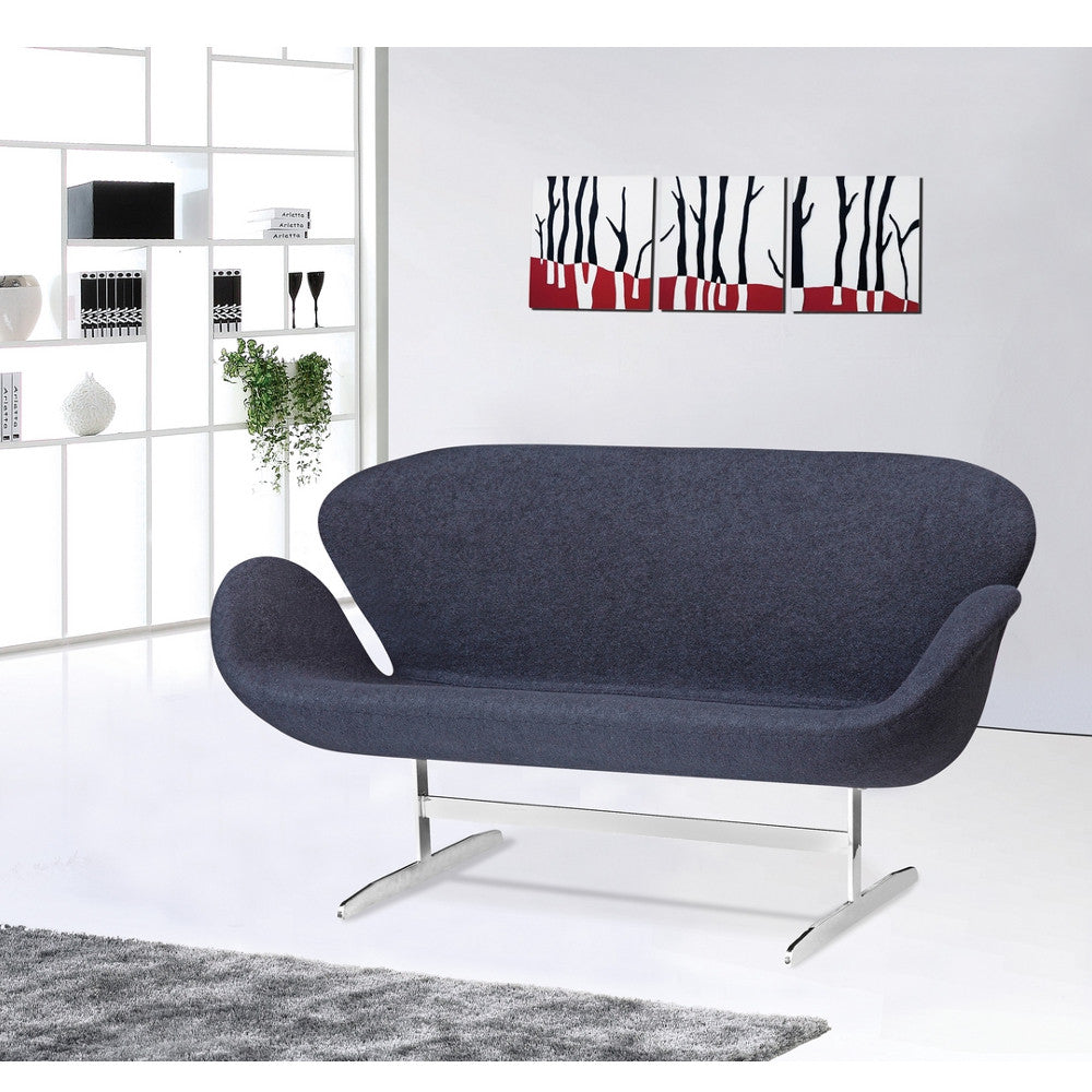 This wonderful chair features a molded fibre glass frame, fire retardant polyurethane foam padding, and covered with wool fabric