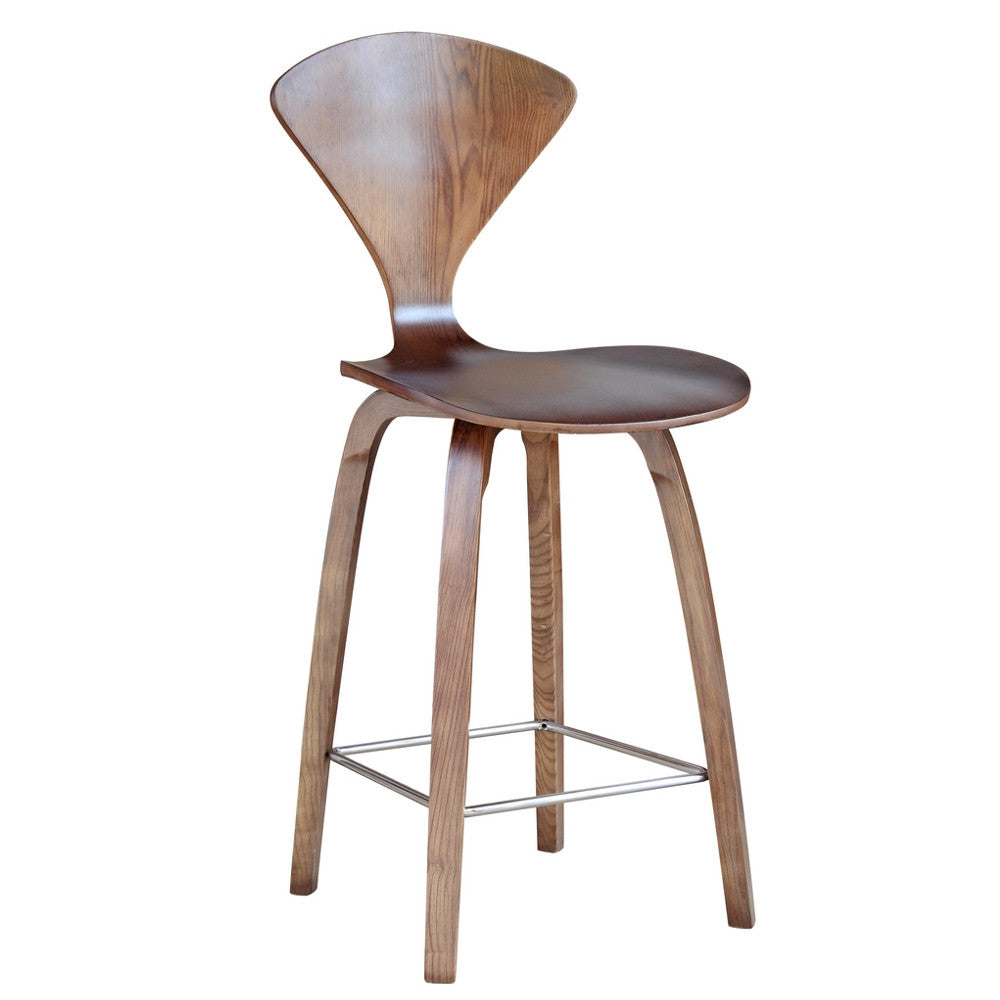 Molded plywood seat utilizes a unique construction of laminated plywood of graduated thickness. The number of plies varies from 15 at the `throat` of the seat to 5 laminations at the seat`s perimeter. This feature, plus the molding of compound curves, permits a structurally superior design, which is sculpted in form and posture supporting.