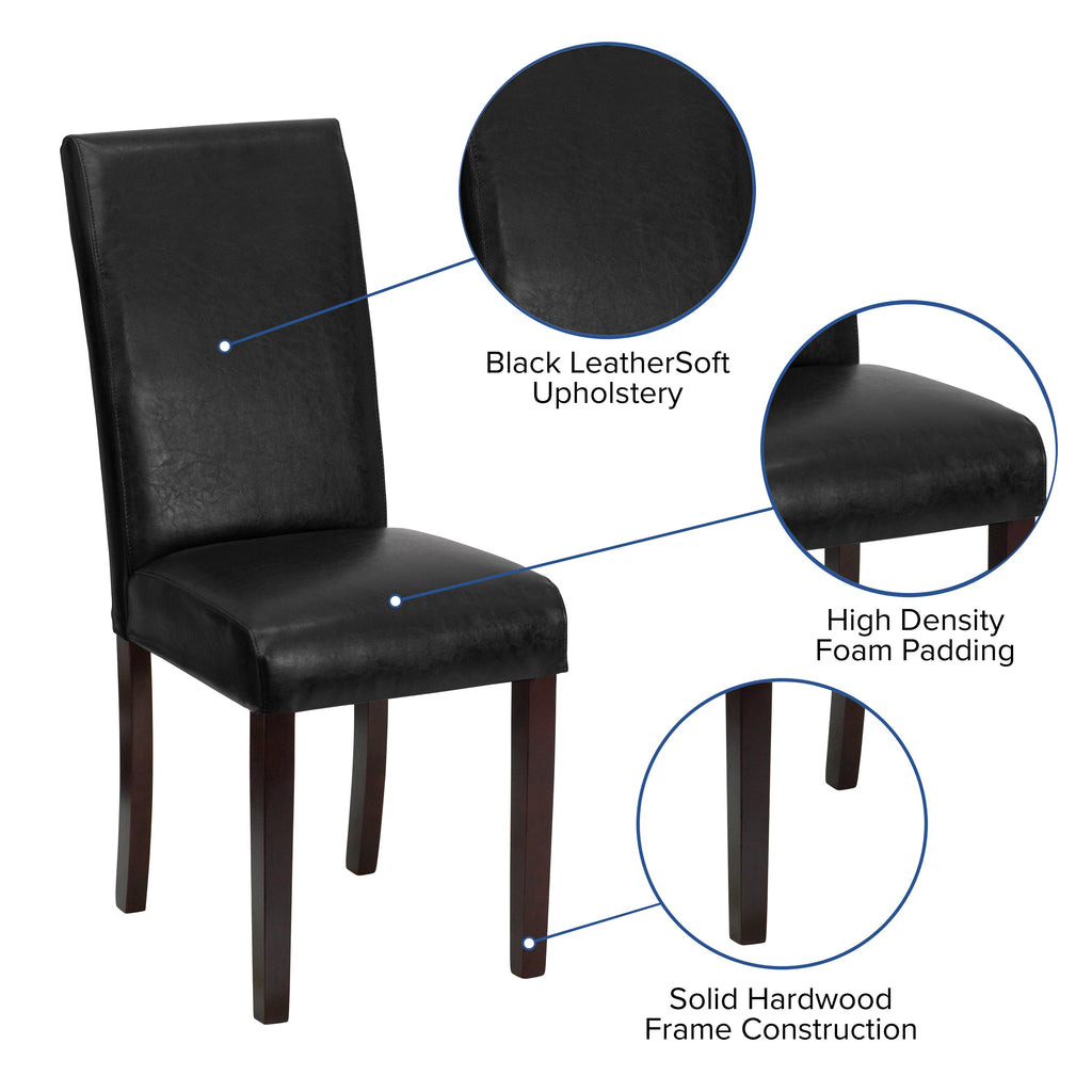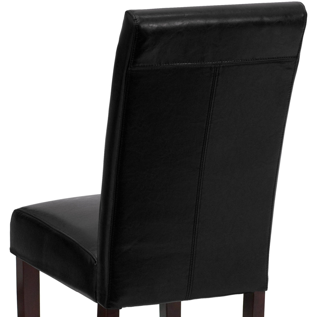 This leather Parsons Chair will add contemporary sophistication to your dining room or living room. This chair can be used as an accent chair around the home when giving your home a more decorative appeal. The European designed side chair features black leather upholstery, while the frame and legs are constructed of solid wood.