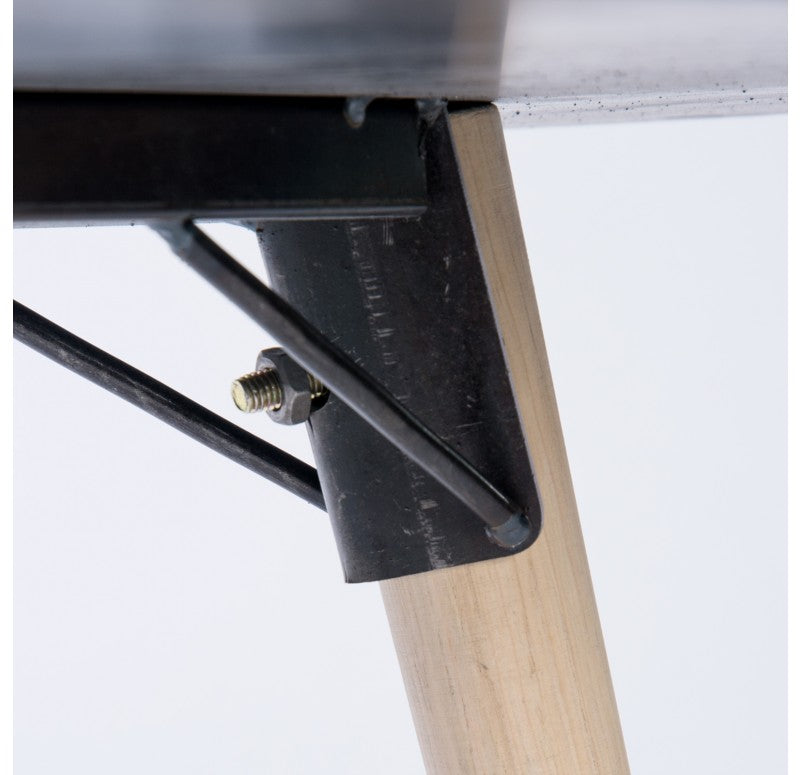 Assembly required. Laminated fir wood on the thick iron sheet. Wood is paintable. Use caution for splintering. No claims. Indoor only.