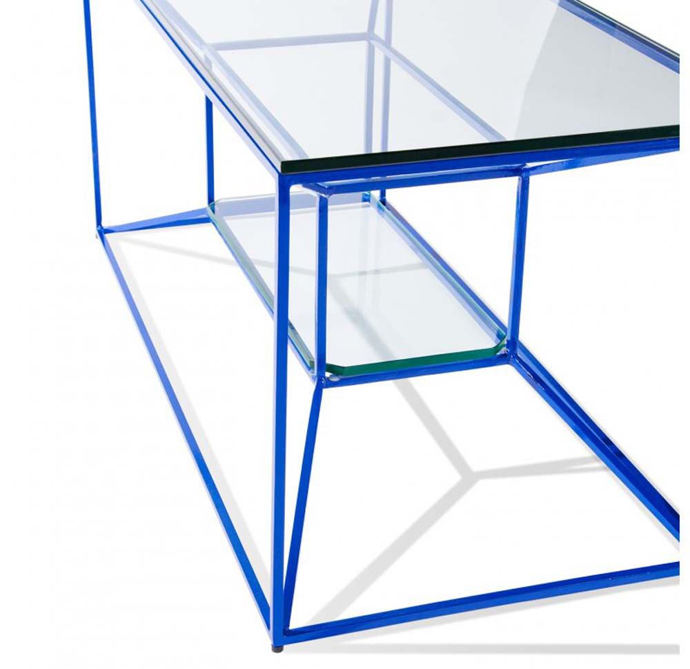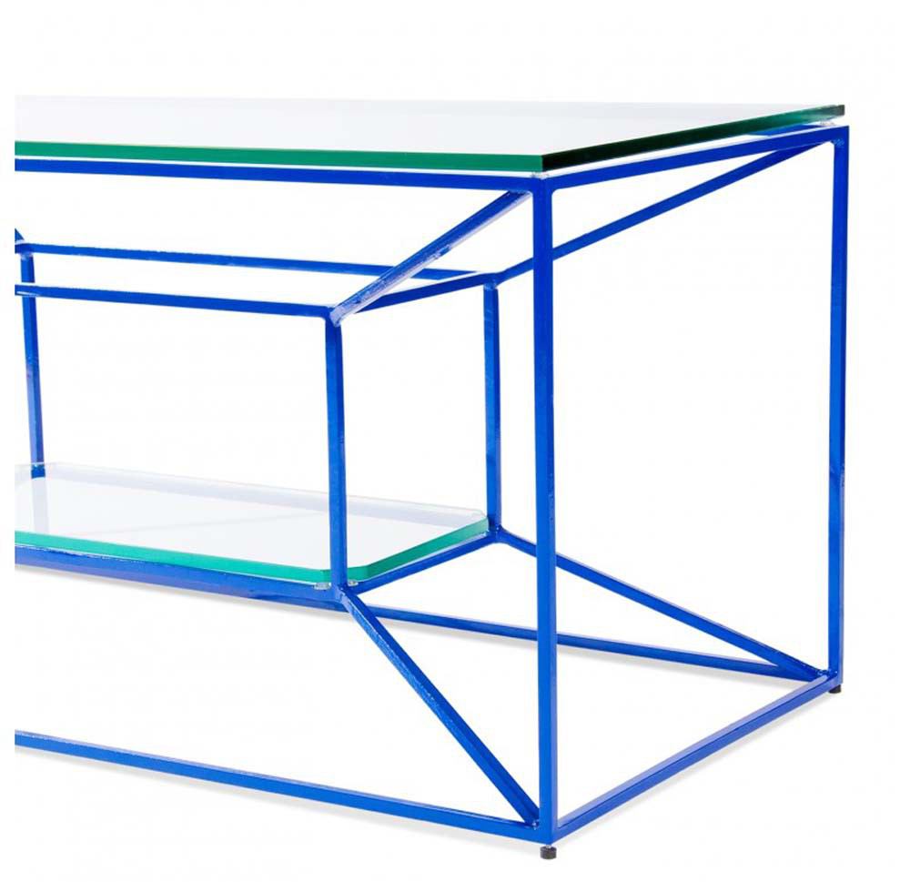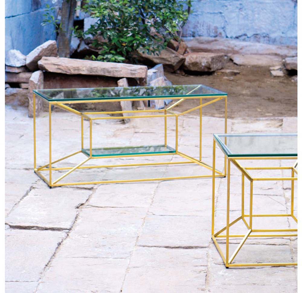 Made of strong square iron with a durable powder coated finish and levelers on bottom. Side Tables have one 1/2"TH glass top only. Coffee Tables have one glass top and shelf. Outdoor friendly but will show age over time.