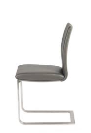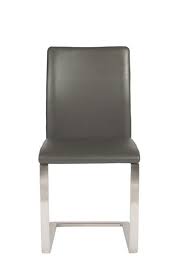 The Alex medium back dining chair is a stylish, sleek modern side chair with easy to clean black leatherette upholstery. This contemporary dining chair also features a sturdy and durable chromed steel cantilever style base and comfortable foam padding at the seat and backrest. The dining chair is also available in Gray, Black and White. They are only available in sets of 2.