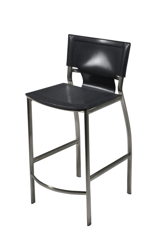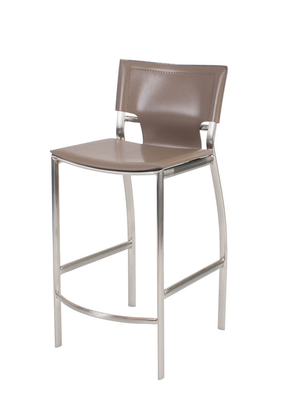 This stool allows you to sit comfortably at a bar or counter. Stainless steel and leather with refined stitching makes this a great piece to own in a home.
