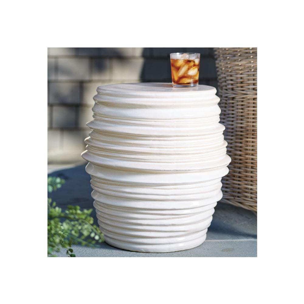 The irregular layers of this ceramic stool give it an edgy, modern feel. With a sleek, shiny gray finish, it's a handsome addition to any living space.